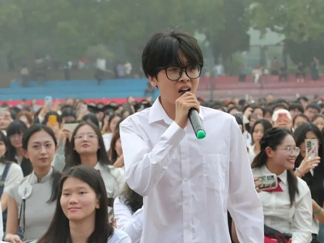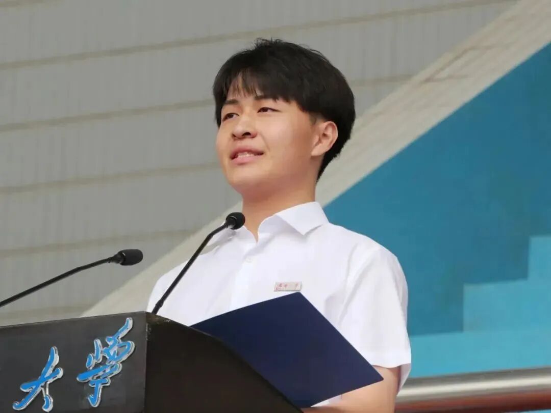 毕业生代表吴泓霖在发言中向所有老师、亲友和同学们致以最崇高的敬意和最衷心的感谢!他说,让我们以家国情怀启航人生,以善于学习助航成长,请党放心、请母校放心,作为济大学子的我们必将沉下心、俯下身,以奋斗者的姿态奋力书写为中国式现代化挺膺担当的青春篇章。