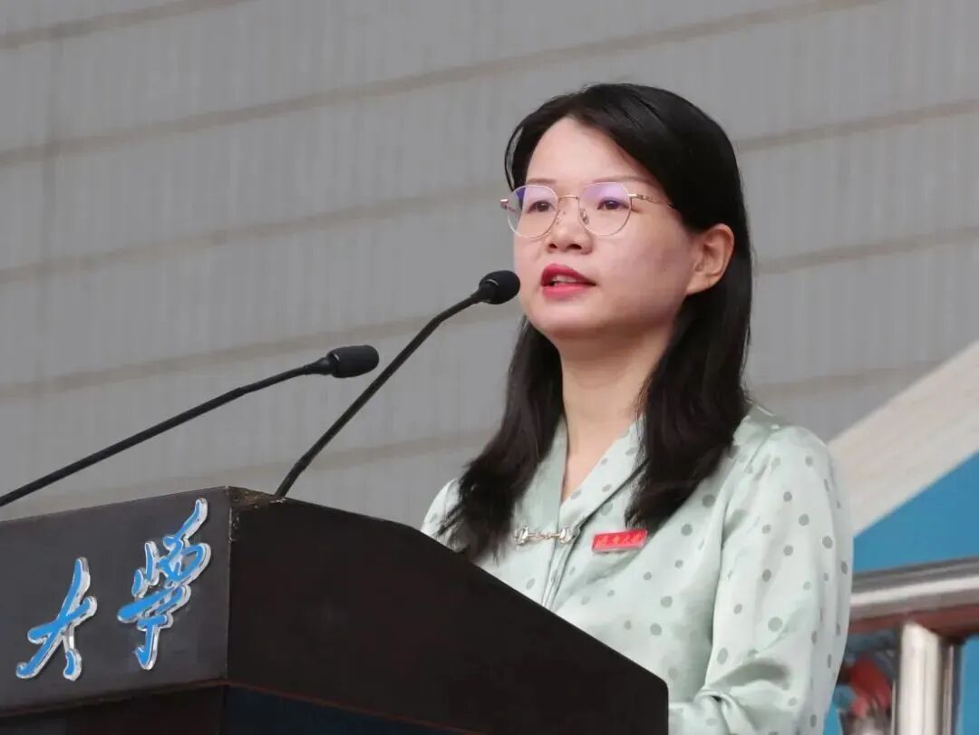教师代表胡丽华与大家分享师者心声。祝贺同学们在济大这片热土不断探索,收获满满的希望。她勉励同学们永葆初心,大胆创新,持续学习、勇于担当,奋力书写青春华章,挺膺担当时代使命,努力争做有理想、敢担当、能吃苦、肯奋斗的新时代好青年,踏上追寻更高成就的新征程。