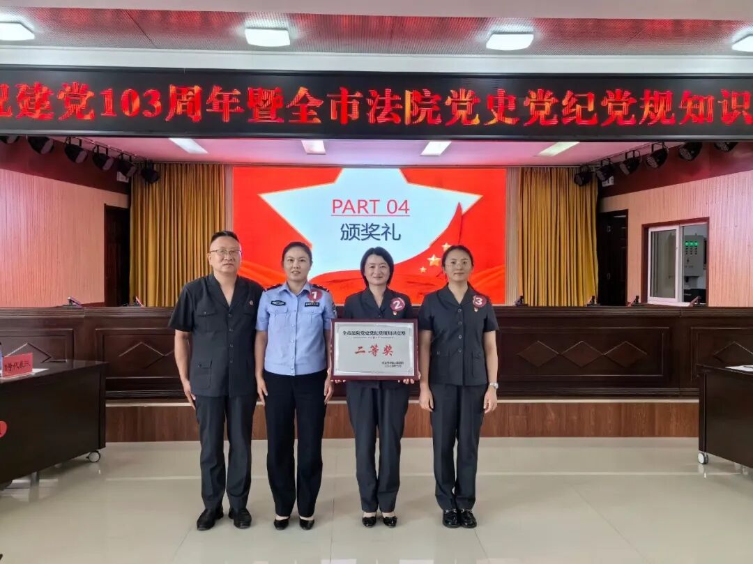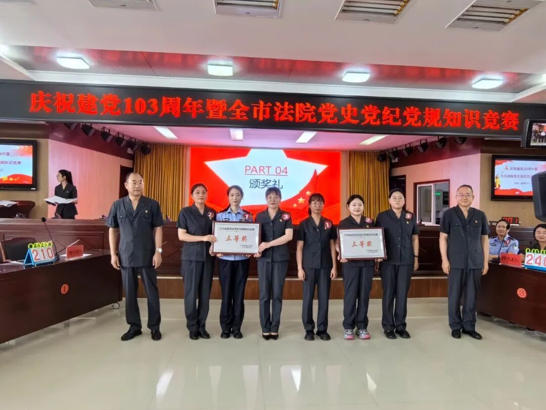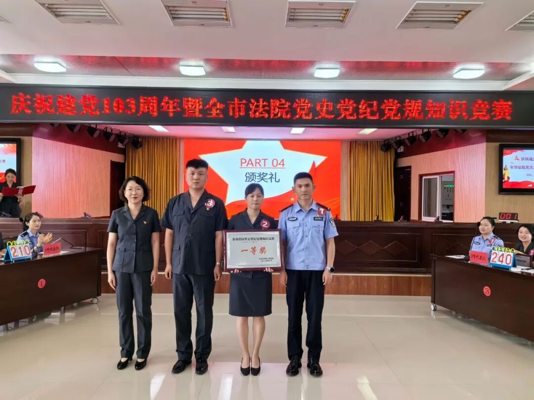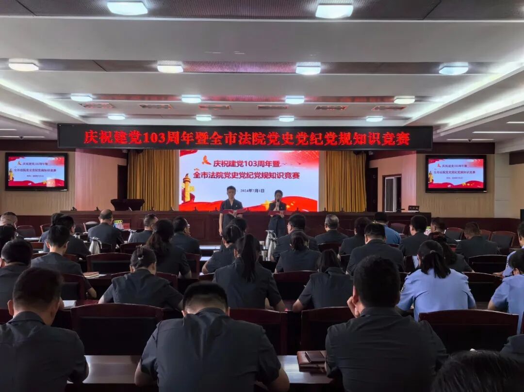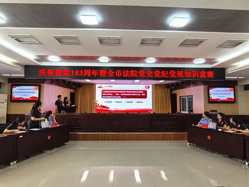7月1日,市中院组织开展庆祝建党103周年暨全市法院党史党纪党规知识竞赛,中卫两级法院共4支代表队12名选手同台竞技。参赛干警们精神饱满,斗志昂扬,沉着冷静,对答如流;4支参赛队伍你追我赶,分数交替上升,精彩不断、亮点纷呈。竞赛现场气氛激烈紧张,参赛选手们积极参与、踊跃答题,既拼速度、又赛实力,充分展现出中卫法院干警的蓬勃朝气、昂扬锐气、浩然正气和良好的精神风貌。