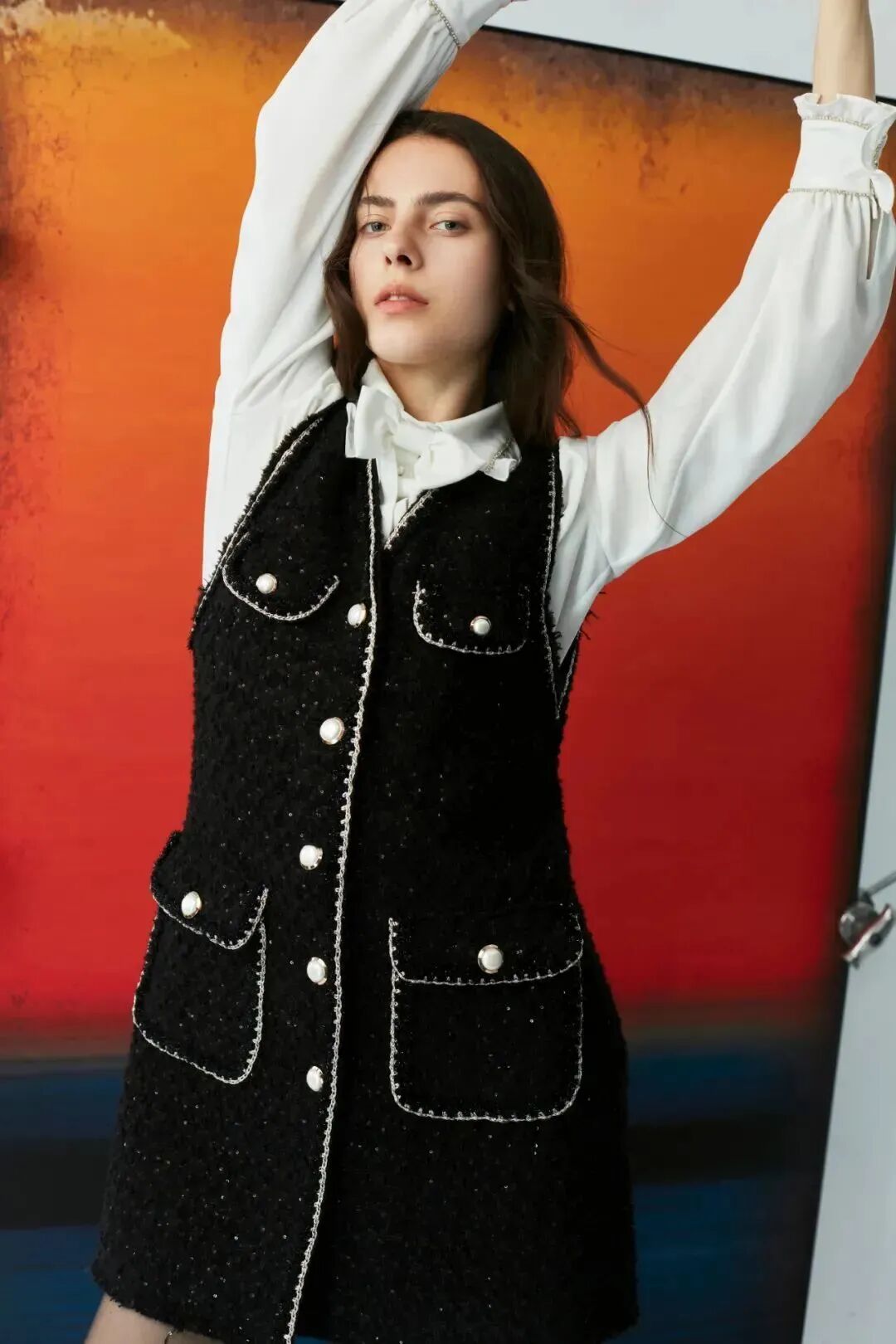 马甲裙珍珠扣 蝴蝶结小香风 优雅气质浑然天成