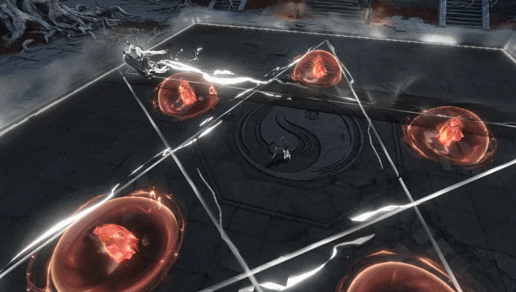 在【暮雨点墨】阶段,司水真君走火入魔,试图重伤所有同门。同门们此时需要及时将对应的怪物拉至正确的位置以重塑太极阴阳阵法,召唤司水真君的亡妻幻影令司水真君恢复理智。
