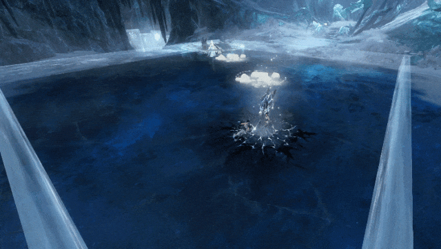 当同门完成追逐战后,将在峡谷之巅与玄兽寒天展开最终决战!当寒天释放【凄风摧绝】,像车轮一样向你滚来时,同门们可以展开巨盾挡住玄兽寒天的冲击,并及时射落场地内的冰锥,破除其冰甲,并可蓄力射出凛神箭给予玄兽寒天重创!