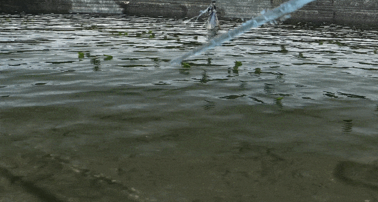 一清俊男子孑然矗立在祭坛中央,他身着道袍、风度翩翩,手撑一把由水组成的伞,天地间的水都向他臣服。