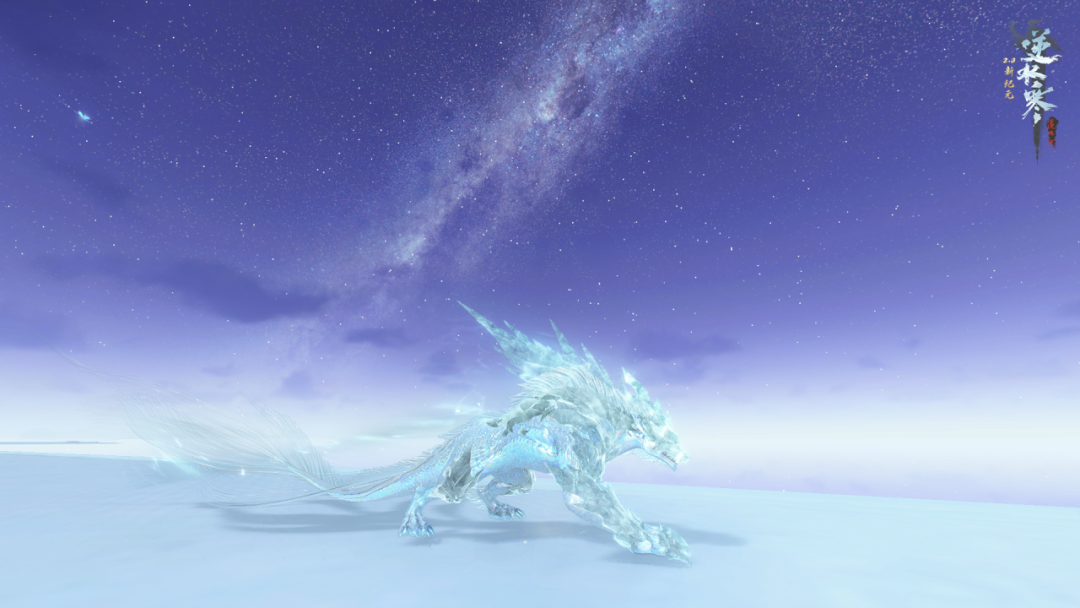 一声孤傲的狼嚎响彻山间,你悄悄探头,只见一只身覆冰晶、威猛神勇的巨狼,正是玄兽寒天!