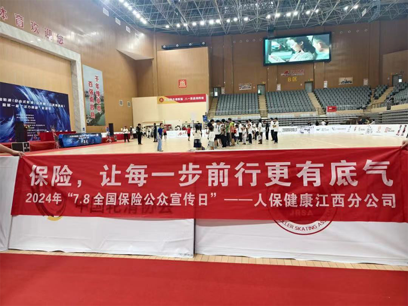 人保健康在2024年中国轮滑(自由式轮滑)公开赛(江西南昌站)暨第一届“活力赣鄱”轮滑赛做好比赛保障的同时,于现场开展“7.8保险公众宣传日”宣传工作。