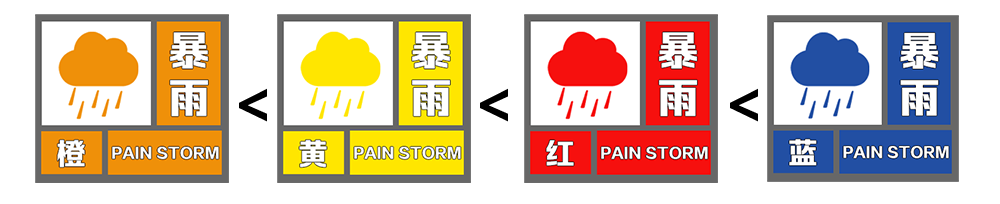 暴雨预警信号分为四级,以下哪个选项为由低到高等级排序