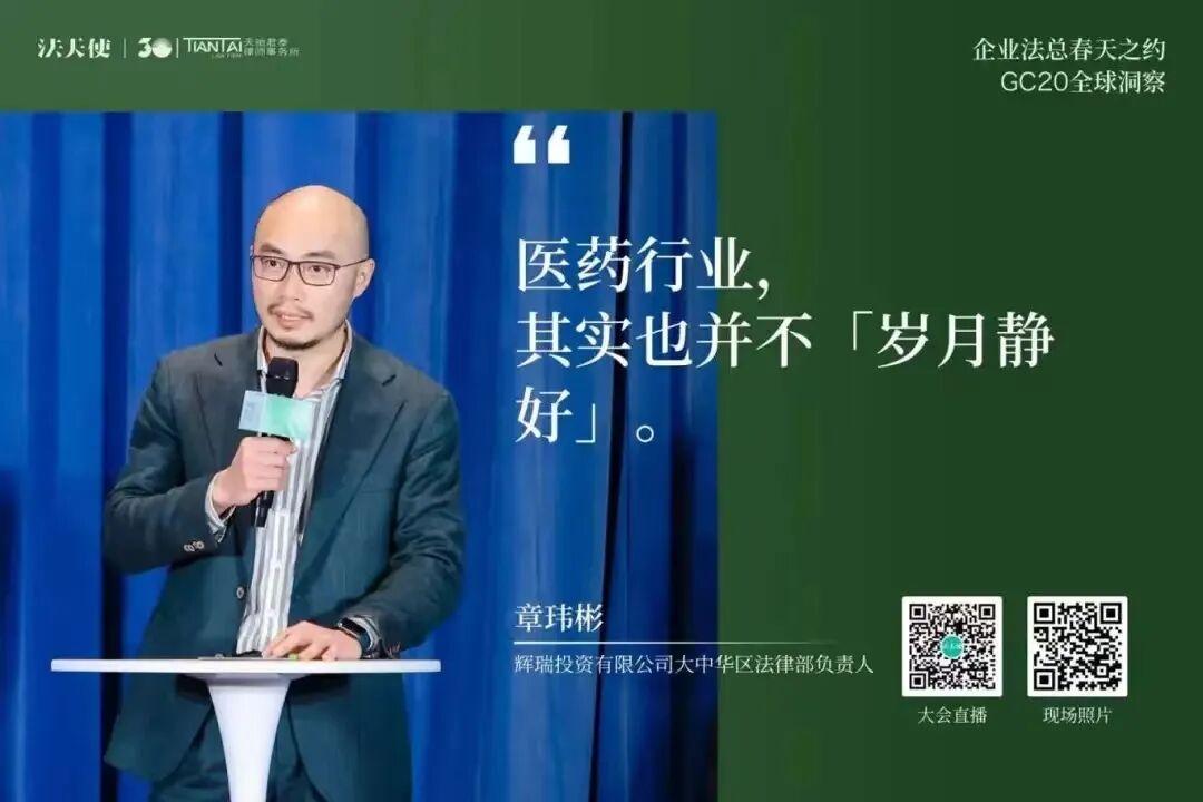 张合主任回顾了他与企业法务在多个专业领域的合作经历,特别是在互联网法律服务和疫苗制药行业的法律实践中的洞见。他突出了律师在行业发展、立法参与、以及商业秘密保护等方面的重要角色,并分享了在推动疫苗管理法和药品管理法修订过程中的合作成果。在圆桌洞察对话环节,与会GC们从“提出一个问题”、“做出一个判断”、“给出一个建议”三个洞察视角切入,分组探讨了人工智能与数字经济、生命科学与制药医疗、企业出海与跨境经营、智能制造与新服务等核心话题,分享了自己的行业洞见。希望能够汇聚到各个行业顶尖企业文化的智慧,提炼出对于宏观经济、行业发展、企业竞争策略等一些深刻见解,并提供一份有前瞻性的指导性年度报告。- 洞察对话二:生命科学与医疗健康,讨论医疗领域的科技创新和全球化发展。