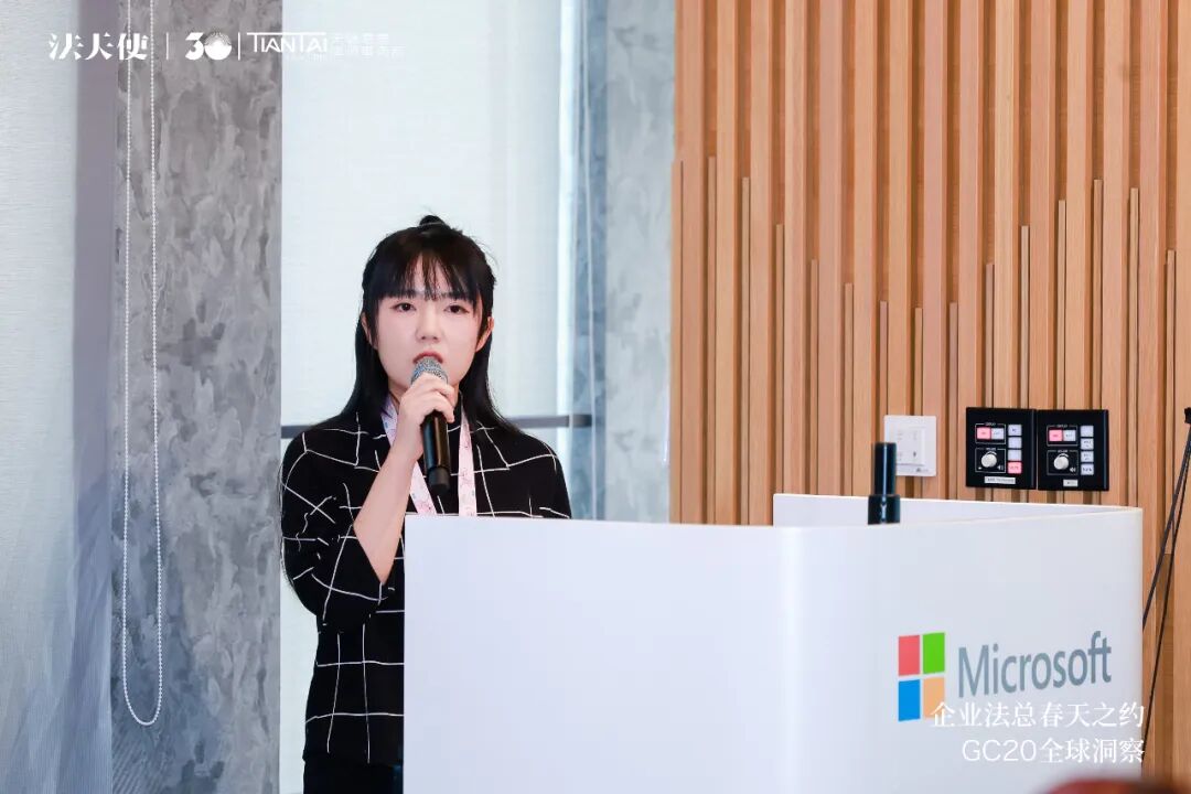 4月19-20日,由天驰君泰律师事务所与法天使联合发起的“企业法总春天之约——GC20全球洞察大会”在上海圆满落幕。本次活动在全国范围内邀请了20位各行业、产业头部企业的总法律顾问(GC:General Counsel ),组成“GC20人”小组,用2天时间深度交流,撰写《GC20全球视野洞察报告》,旨在让优秀法务分享经验,帮助律师更好了解甲方真实需求,增强两者之间的互动和理解。EMI分享了米其林公司的核心价值观和绩效管理策略,包括尊重个体、领导力的普及、信任的建立、以及通过持续反馈和个人绩效评估来促进员工发展和公司战略的实现。同时,强调了在不断变化的时代背景下为员工找到工作的意义感的重要性。在「深度与谈」环节,与会GC嘉宾们交流的内容主要涉及公司文化和员工的互动、OKR的设定和执行经验、远程工作的影响、法务部门在企业中的角色、个人成长对组织发展的重要性以及不同平台的市场定位与策略等多个方面。- 微软公共及法律事务部中国区商务总法律顾问李晨:「微软应对人工智能法律挑战的实践」