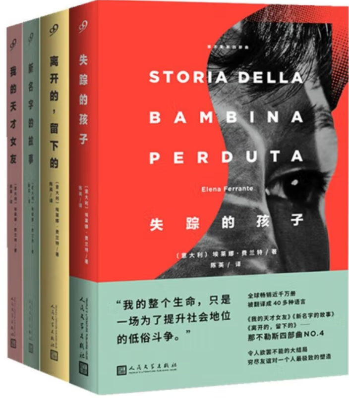2011年至2014年,埃莱娜·费兰特以每年一本的频率出版《我的天才女友》《新名字的故事》《离开的,留下的》和《失踪的孩子》这四部情节相关的小说,被称为“那不勒斯四部曲”。它们以史诗般的体例,描述了两个在那不勒斯穷困社区出生的女孩持续半个世纪的友谊。