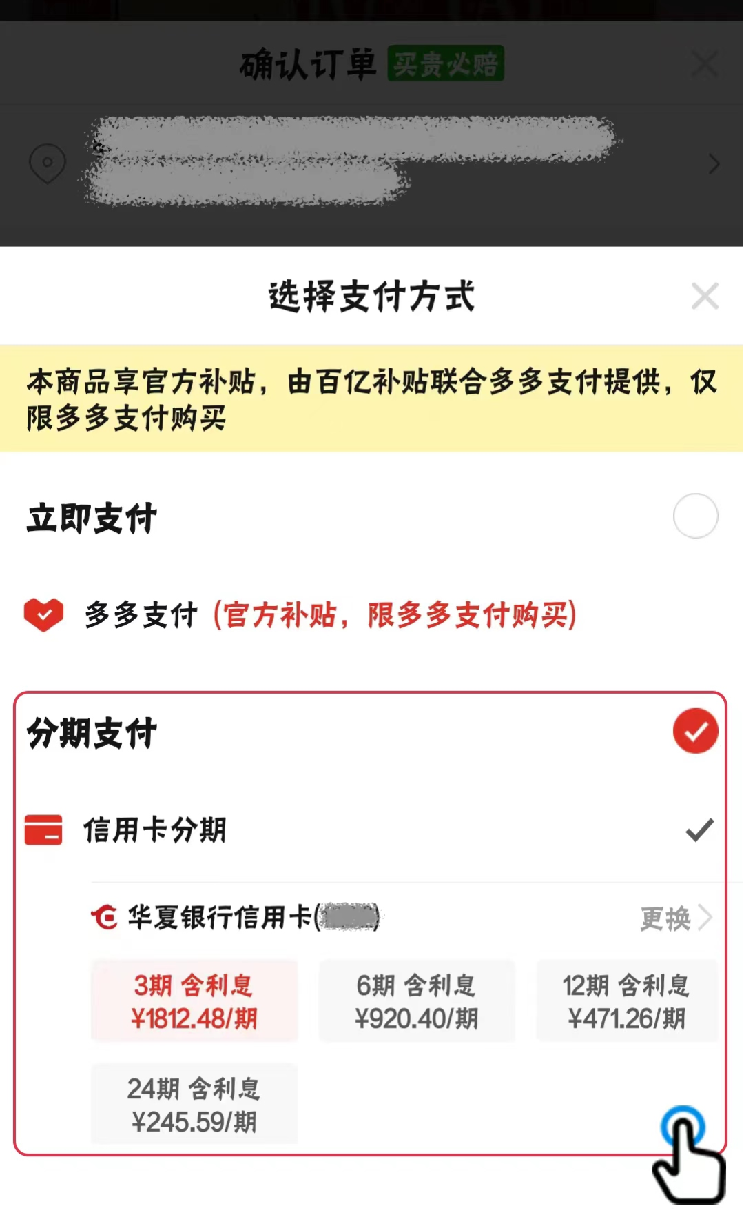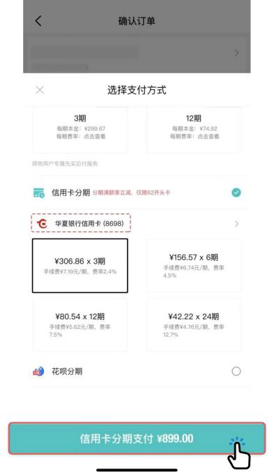 华夏银行银联信用卡持卡人通过天猫淘宝APP购买指定商品单笔/合并付款超过500元(含)可申请最高24期分期,部分商品可享受免息分期,无名额限制。