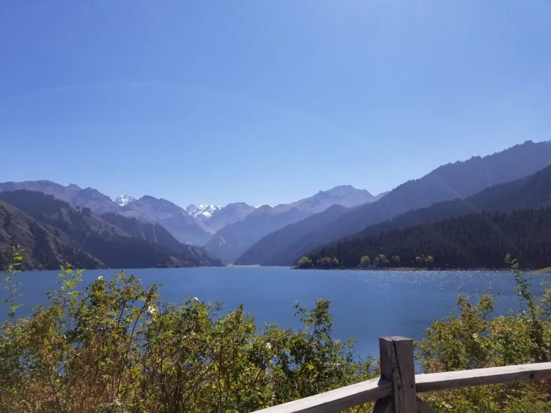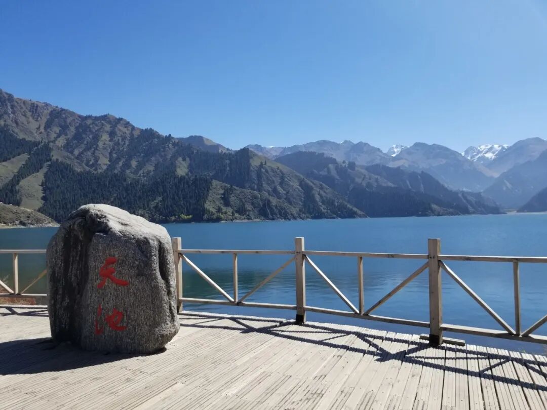 天山天池,宛如一颗璀璨的蓝宝石坠落于博格达峰之间。天池碧波荡漾,云影天光;天山白雪环绕,巍峨挺拔。