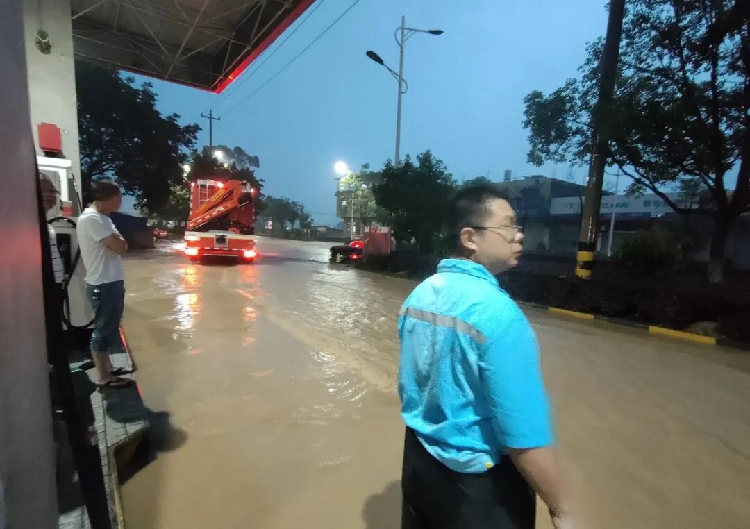 6月23日,广西桂林市遭遇了30年一遇特大洪水,导致多名顾客滞留某酒店,广西销售独山站经理许艳艳辗转5个小时,最终将油品送达酒店保障发电机正常工作。