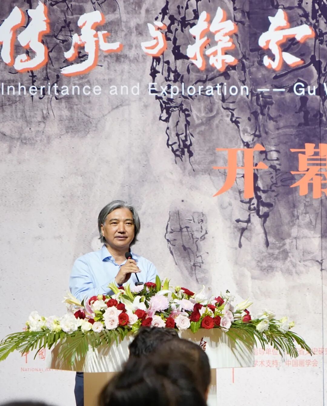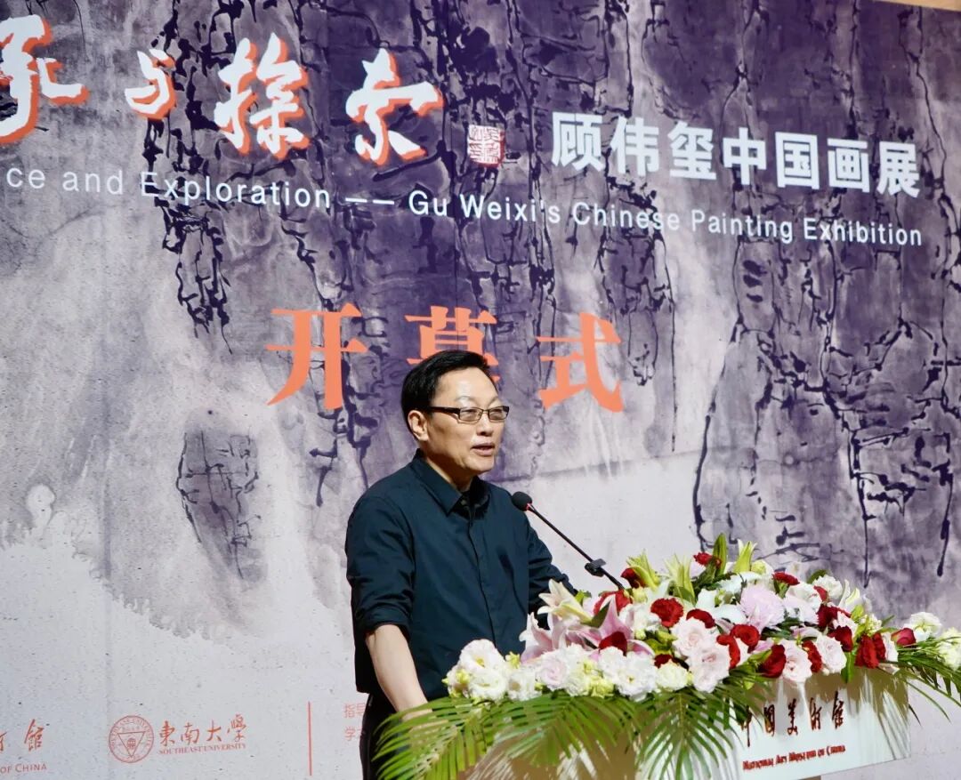 东南大学党委书记左惟作为主办方代表致辞。他代表学校向顾伟玺教授画展在中国美术馆顺利开展表示祝贺,并介绍了东南大学悠久的艺术教育历史和艺术研究传统。他指出,顾伟玺教授长期致力于中国画创作和理论研究,是学校艺术创作研究的领军人物和学术带头人,积极推动成立了东南大学中国画研究院,成功举办了多次重要的中国画展和学术研讨活动,发现和培养了一批中国画创作的优秀画家,在艺术创作领域产生了重要影响,为推动学校艺术学科发展、为促进艺术交流传播作出了积极贡献。