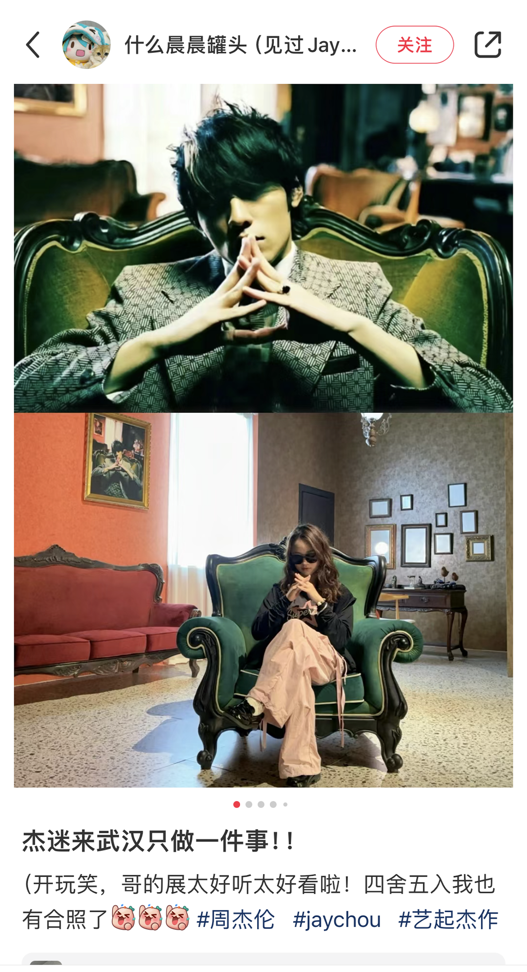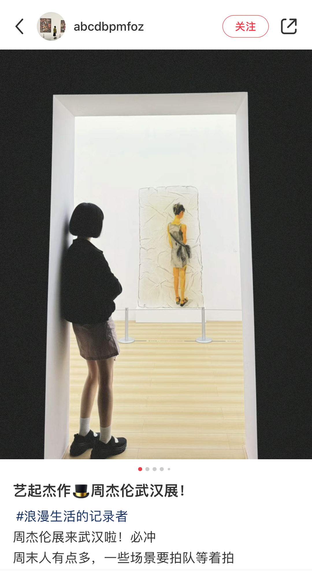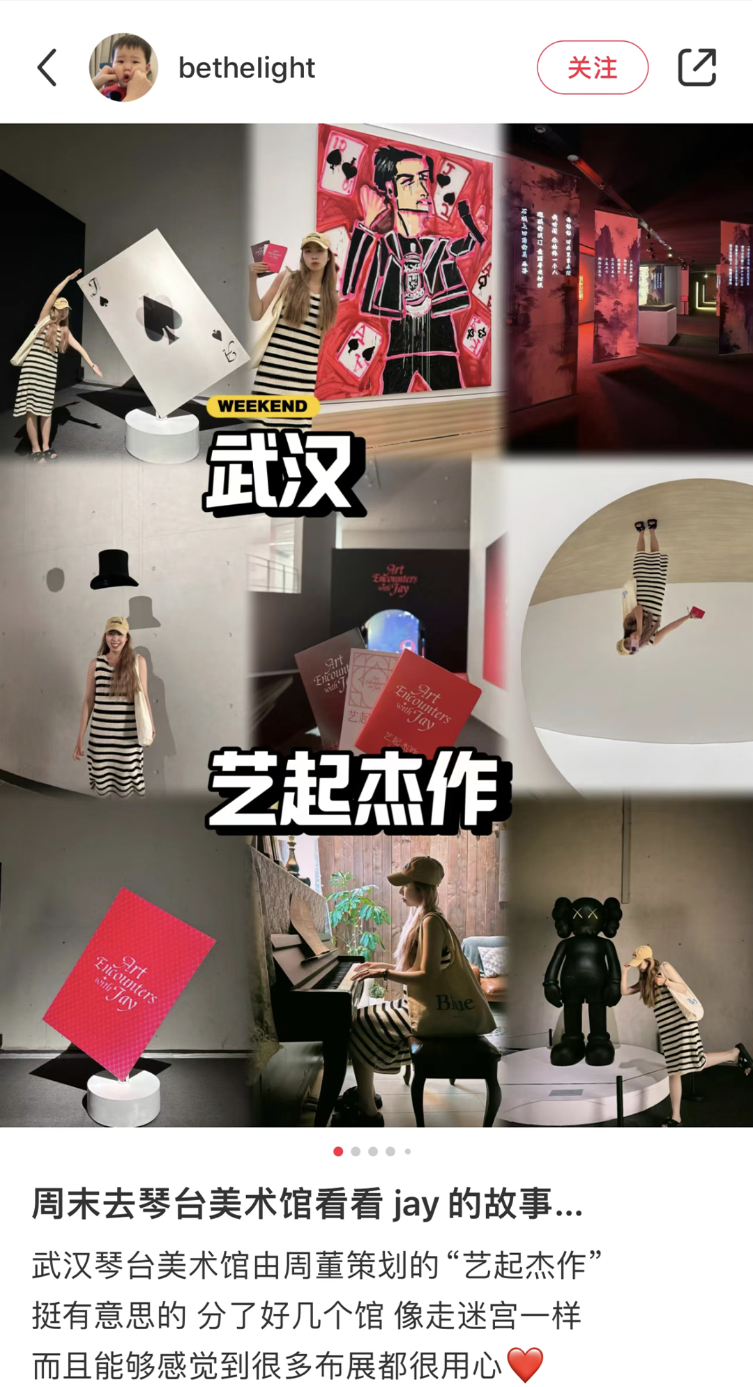 2024 年 4 月 17 至 7 月 6 日,由武汉市文化和旅游局指导, 武汉美术馆、万事如艺(北京)文化艺术有限公司、中鸿创艺(北京)文化发展有限公司、瀛识博睿(深圳)文化创意有限公司联合主办,华语流行乐天王周杰伦担当总策展人的《艺起“杰”作》艺术展于武汉美术馆(琴台馆)展出。巡展武汉站已于近期圆满落幕。