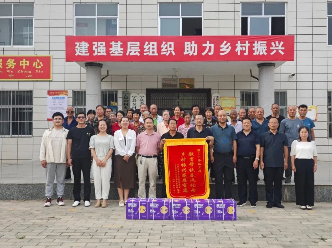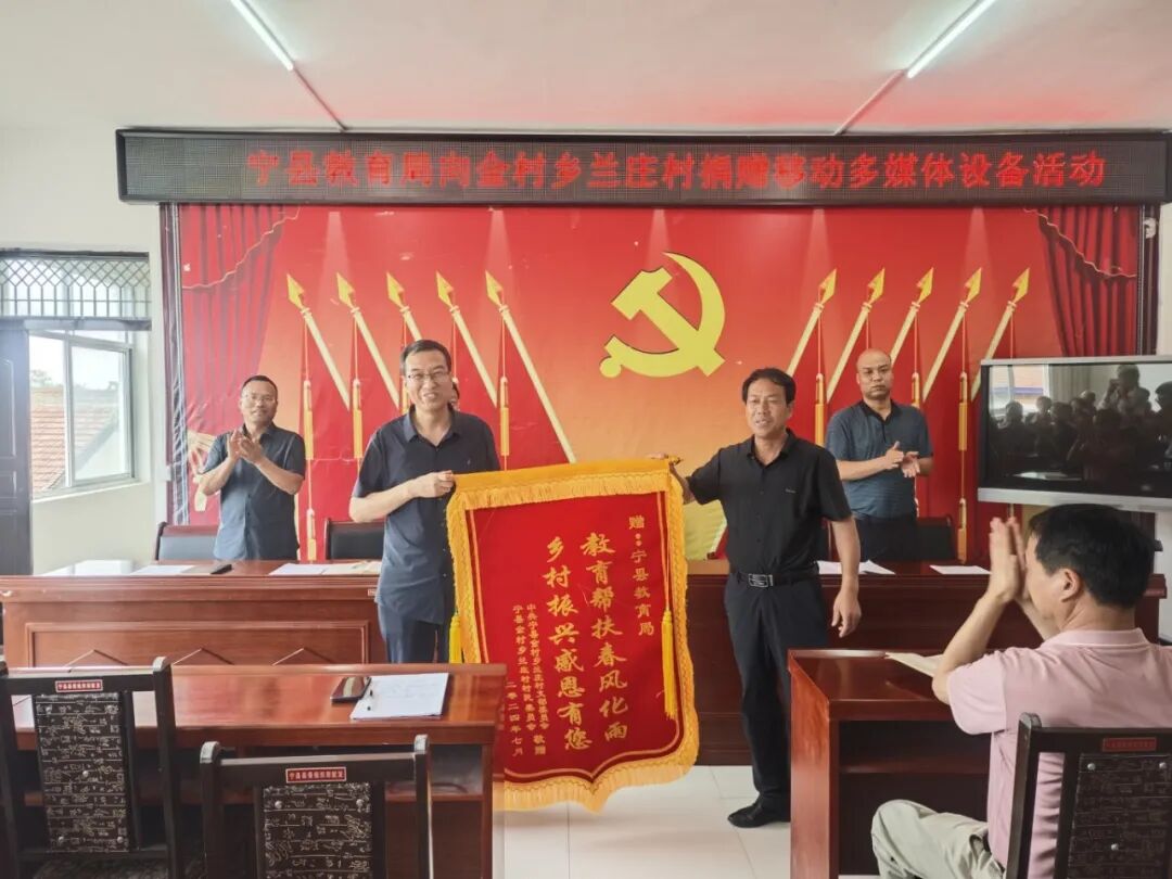 仪式结束后,兰庄村村“两委”向宁县教育局献上锦旗。