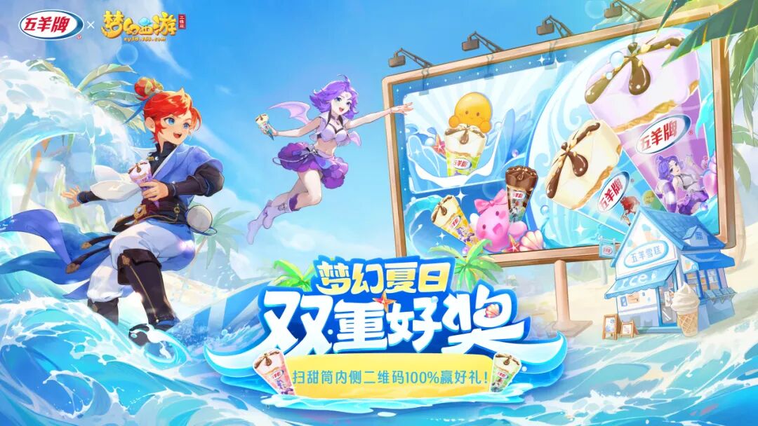 现在购买五羊牌联名雪糕,使用产品扫码,立刻直领《梦幻西游三维版》专属福利礼包!礼包内含限定挂件【五羊冰淇淋】兑换券(1天)、金丹*1、修炼果*1、银币*10000。