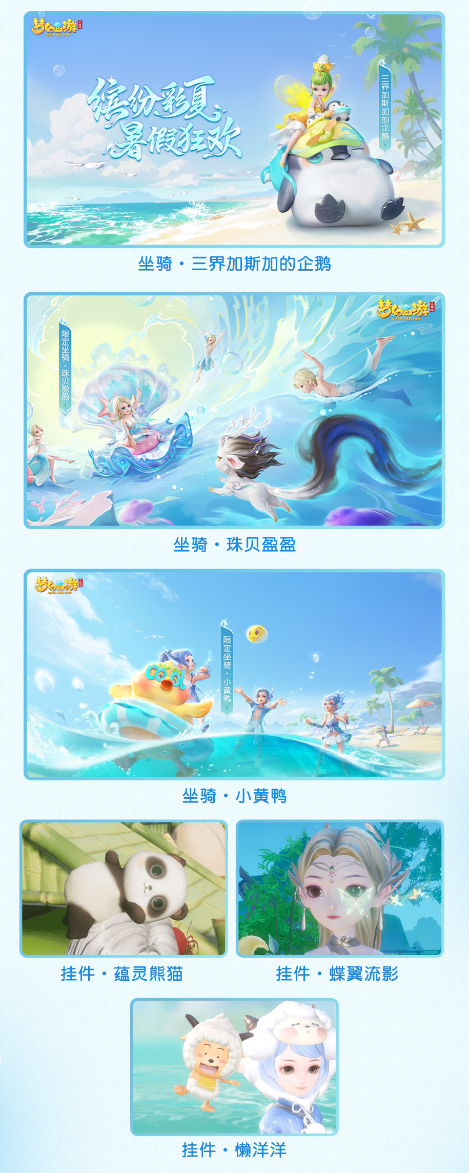 本次活动中还有【三界加斯加的企鹅】、【珠贝盈盈】、【小黄鸭】、【蕴灵熊猫】、【蝶翼流影】、【懒洋洋】等限定外观惊喜返场,喜欢的小可爱可不要错过!