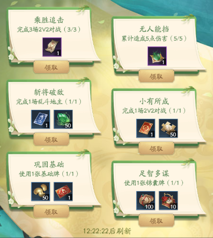 | 每日2V2排位获胜1次,可领取元宝*10 | |