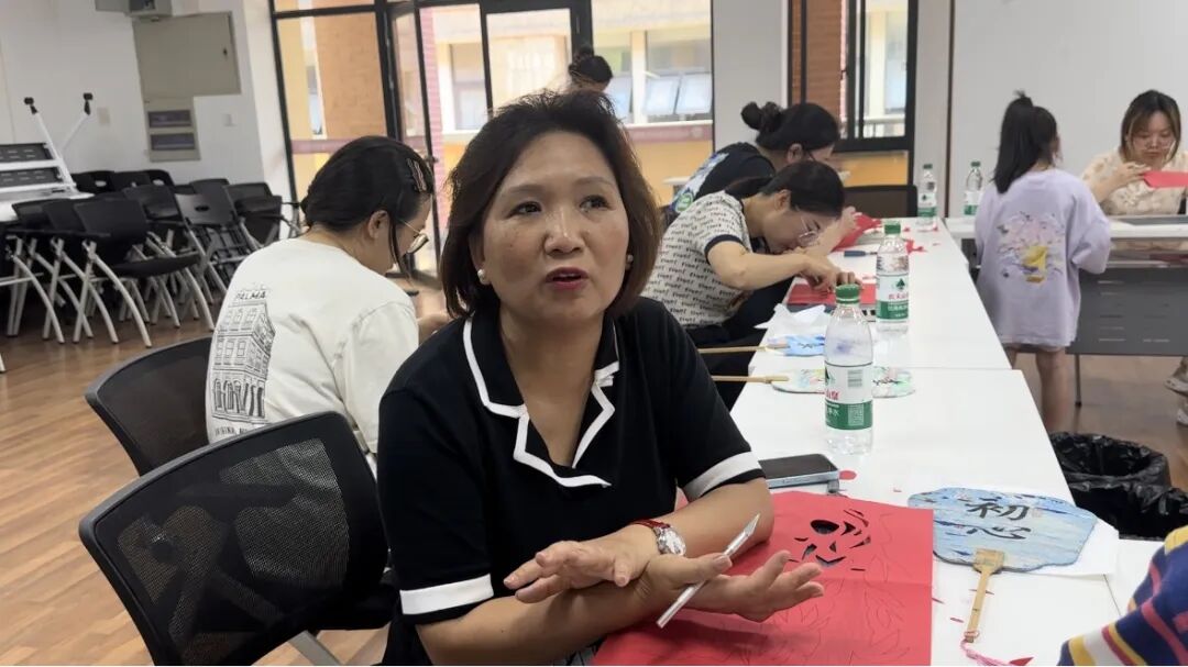 实践队还特别设置了漆扇制作和剪纸制作环节,社区居民在活动中感受传统文化与廉洁的碰撞。先由实践队员汪雅俊对漆扇进行了介绍,然后社区成员们选择自己喜欢的颜色,并且在实践队员的帮助下,运用点、弹、甩、划等手法在水面上绘制图案,将扇子以不同的方式放入水中,得到了一把把独一无二的扇子。每一把扇子都承载着制作者对廉洁文化的理解和热爱。随后实践队员王小茹向社区成员介绍了剪纸,社区成员们拿起剪刀和彩纸,巧手翻飞间,一幅幅寓意深刻的廉洁主题剪纸作品应运而生。社区成员通过漆扇和剪纸活动,不仅亲身感受了传统文化的魅力,更在创作中深刻体悟了廉洁文化的深远意义。