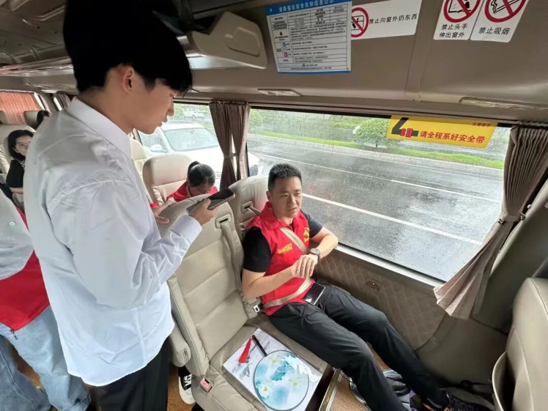 7月5日,实践队成员和社区党员同志共同乘坐大巴车前往全国闻名的红巷——小营巷。在路途中,开展了廉洁故事分享活动,社区党员积极参与,分享身边的典型人物故事,并获得“青莲”团扇。