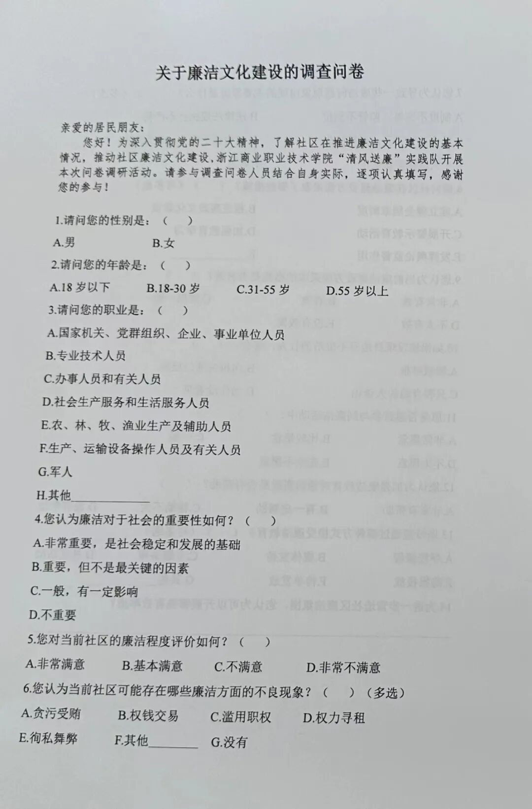 为了解社区在推进廉洁文化建设的基本情况,推动社区廉洁文化建设,实践队开展了问卷和访谈调研活动。