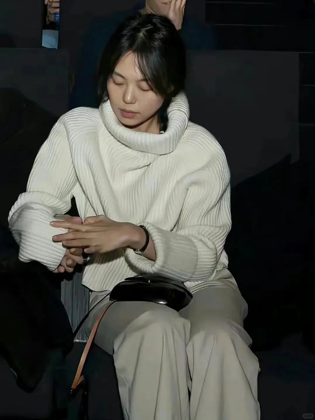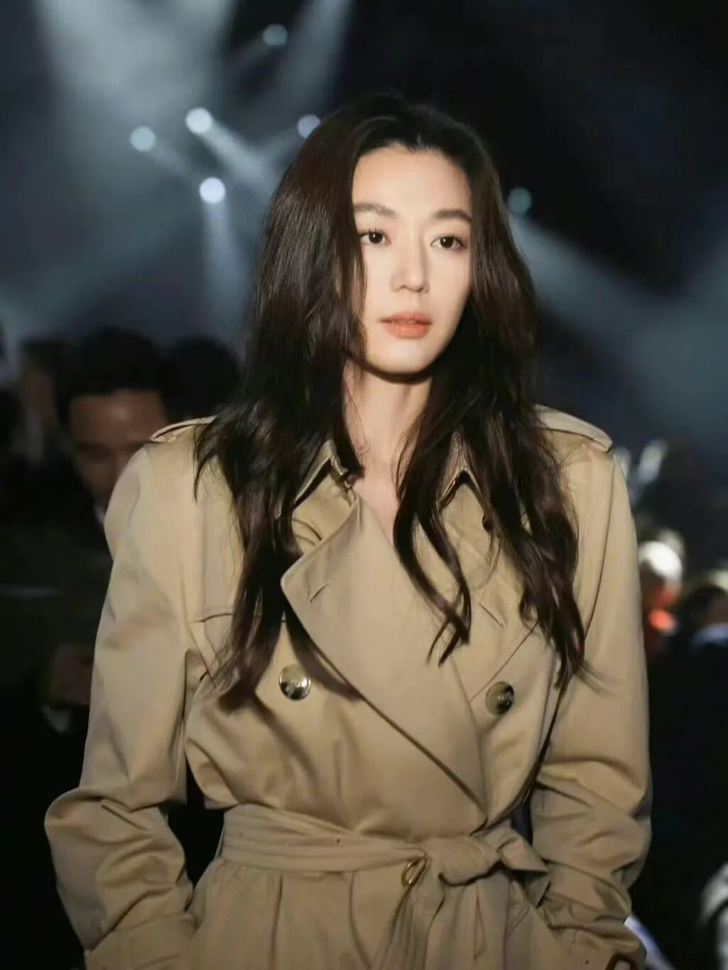 全智贤在这场Burberry大秀的修罗场中,以清透裸感的妆面低调出场,干净简单,展示出毫不费力的美,在一众争奇斗艳中显得高级又有气色。