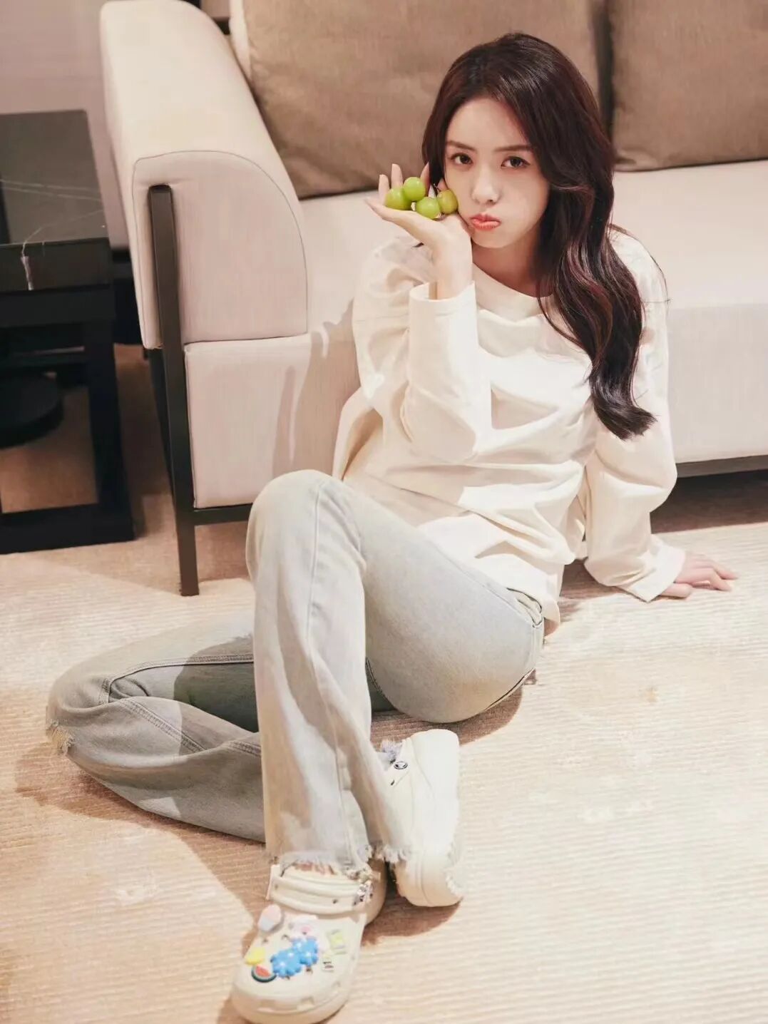 很多女明星都爱穿的洞洞鞋是舒适感的top1,像蔡文静一样搭配鞋花,给原本毛坯的洞洞鞋装饰成“精装”,拜入洞门,是你我最终的归宿。