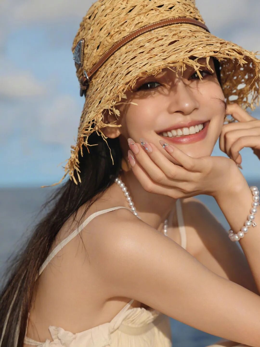 Angelababy在海边度假带的草编帽自带松弛感氛围,让人眼前一亮,是度假、野餐、凹造型的第一选择,为炎热的夏日添了一抹清凉。