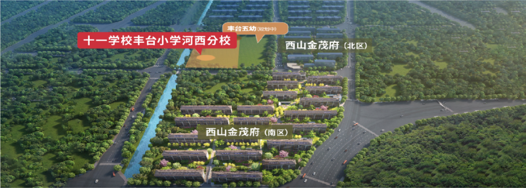 十一学校丰台小学河西分校占地约3.26公顷,建筑约2.7万平方米,规划为36班;丰台第五幼儿园分园将由区属国企举办,丰台五幼承办,规划为15班幼儿园;十二中河西分校落户张郭庄棚改项目A区教育用地,规划为九年一贯制学校。在西山金茂府,与三大重点名校比邻,优教资源与高阶生活交相辉映。