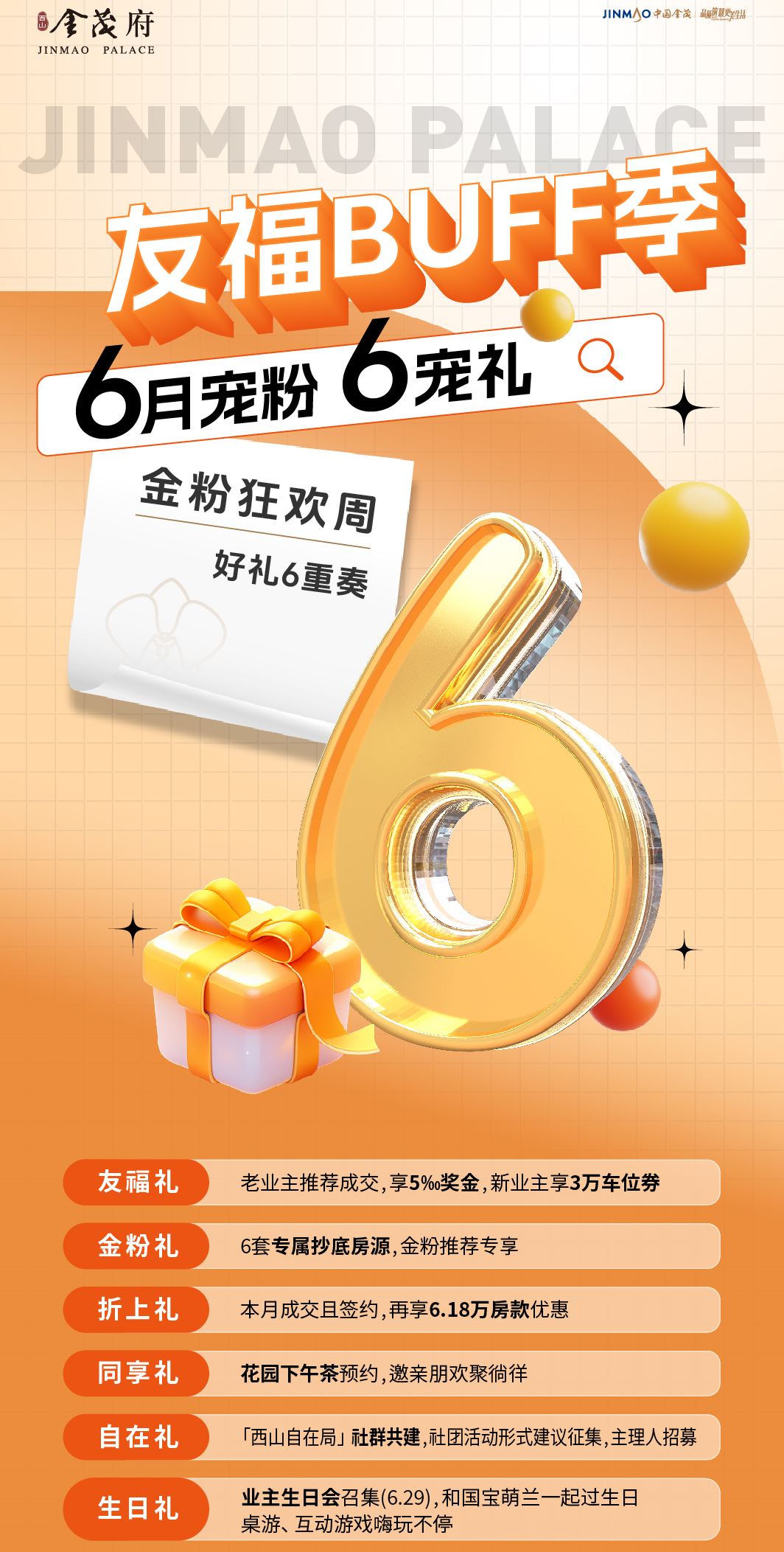 在盛夏的热浪中,西山金茂府6月购房节“友福BUFF季 金粉狂欢周”美好上映,为金茂粉带来一场别开生面的狂欢盛宴,将实力宠粉进行到底。好房好礼为您备齐,金喜豪礼、缤纷活动、专宠福利……等精彩奉上,多重福利嗨翻盛夏。这个6月,来西山金茂府,看金茂好房,享金喜府礼,我们期待与您美好相遇!