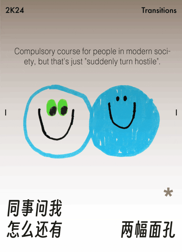 透露给同事的个人信息总归是有限的,上班时硬着头皮才能撑住打工人人设,离开工位却只关心自己到底City不City;有时候是明知道同事在分零食,从还没轮到自己时不目斜视的强装淡定;有时候是上一秒是灰头土脸打工人,下一秒已经在市中心的fancy 餐厅打卡……可能相处三年,同事才终于问出口:你怎么还有两幅面孔?