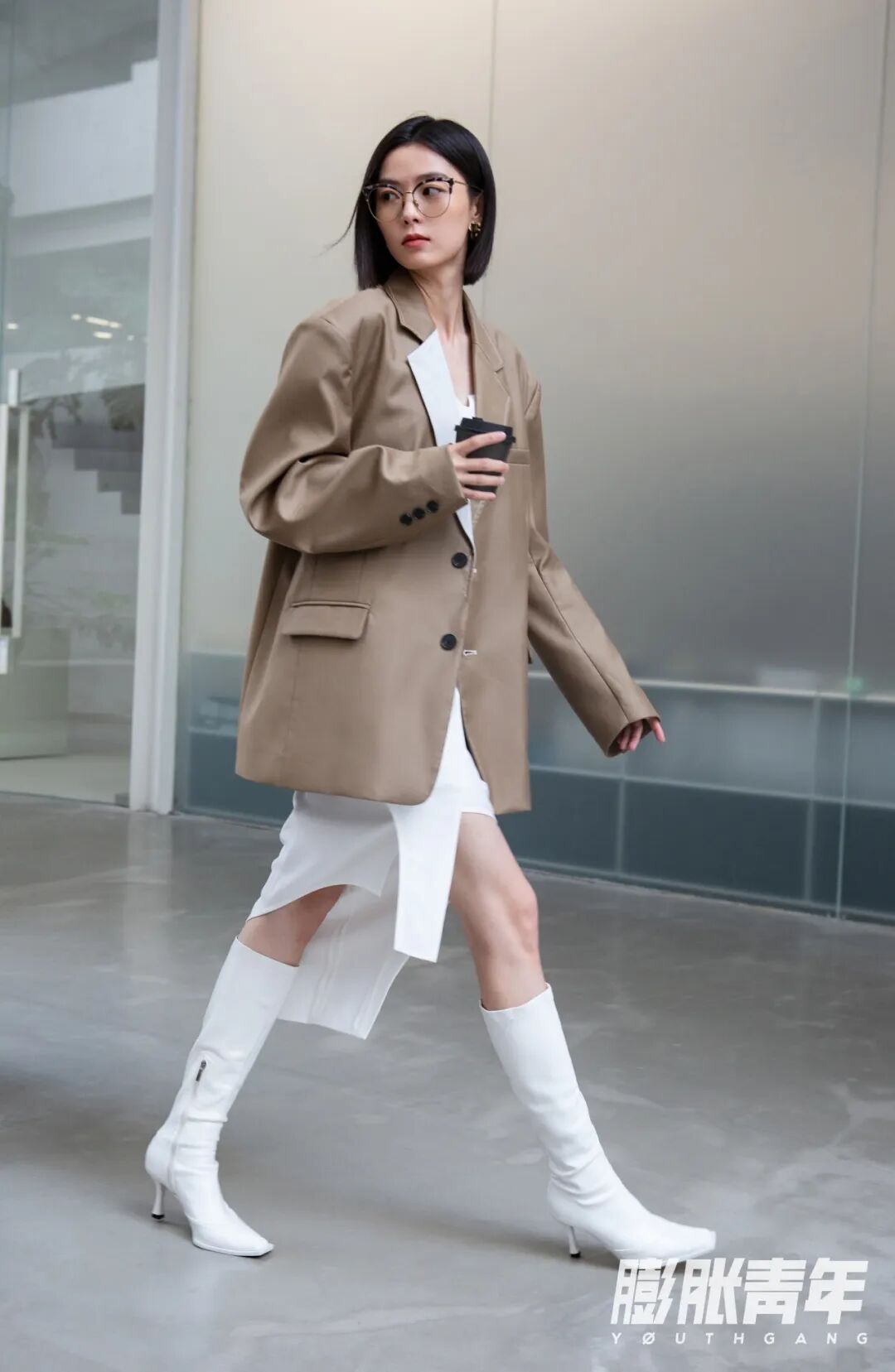 除了干净利落的套装之外,框架眼镜的作用就是自带画外音:别催,在做了。