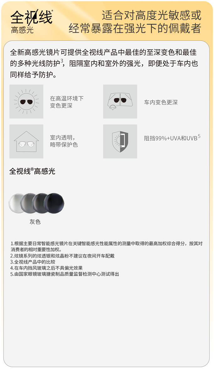 必须用嘶吼的分贝 highlight 全视线®智能感光变色镜片的最大特点之一:它!会!变!色!