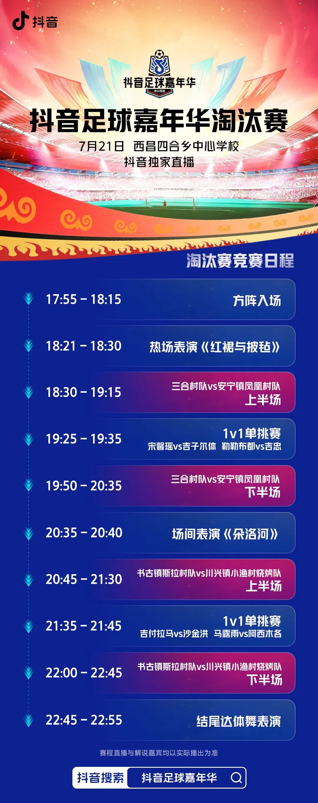 目前,「抖音足球嘉年华」已经进入最精彩的赛段。7月20日下午至7月21日,在西昌市四合乡中心学校足球场,喜德三合村足球代表队、书古镇斯拉村代表队、川兴镇小渔村烧烤代表队等8支足球队和16名球员将分别进入淘汰赛和“凉山足球先生1V1单挑赛”的角逐,7月29日火把节当日将举办决赛。