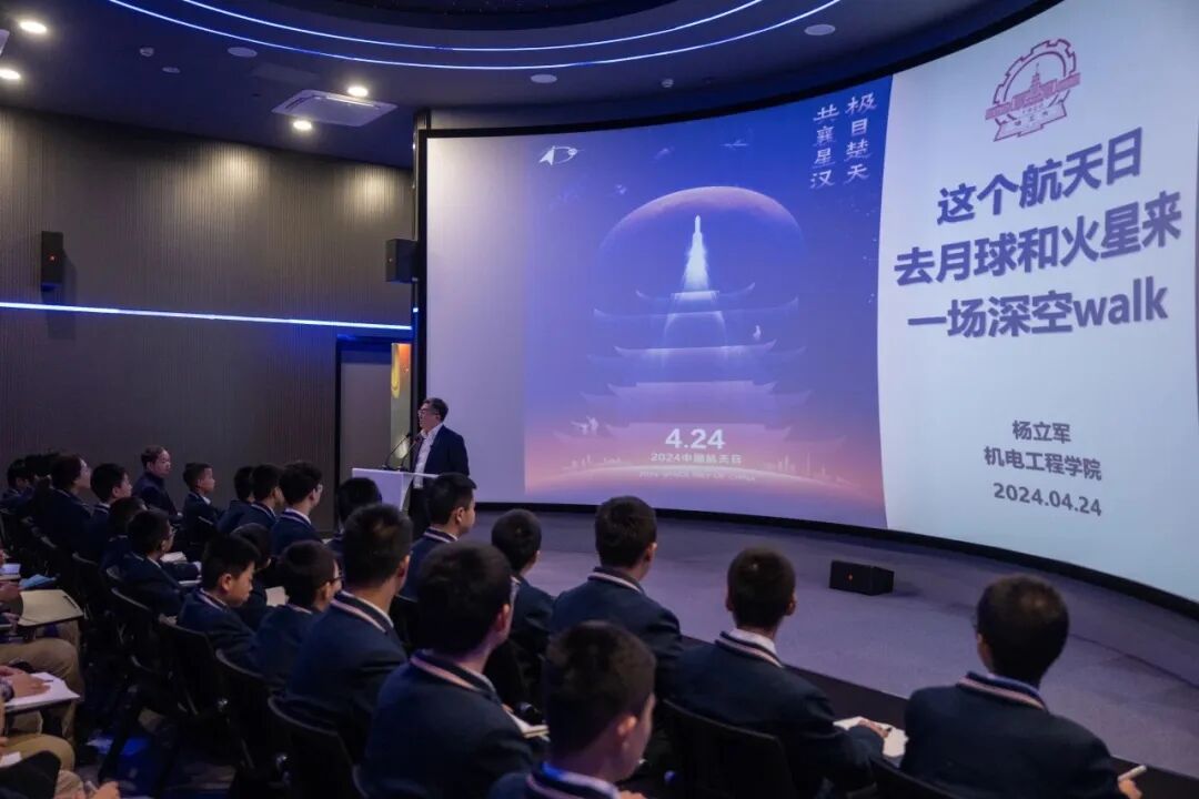 今年4月24日,在第九个“中国航天日”到来之际,哈工大课堂进校园特别活动“强国系列科普讲座”第二、三期在航天馆举行。机电学院杨立军教授、生命科学和医学学部田维明教授分别带来《这个航天日,去月球和火星来一场深空walk》《带你探秘哈工大在“家门口”怎样做“太空实验”》主题讲座。两场直播累计观看超588万。
