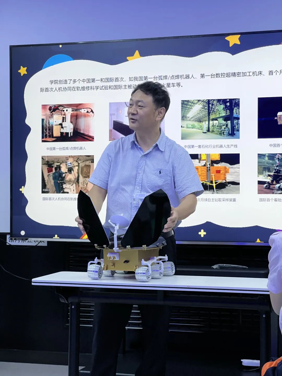 “2022年5月22日,我主讲了第一期哈工大课堂‘火星背后的科学力量’,两年后,很荣幸再次做客哈工大课堂为青少年介绍哈工大与中国探月20年的故事。哈工大中心是学校面向公众传播科学知识的重要窗口,希望通过哈工大课堂,让更多人尤其是青少年广泛地关注前沿科技,同时把哈工大打造国之重器的故事讲给更多人听。”李传江教授说。