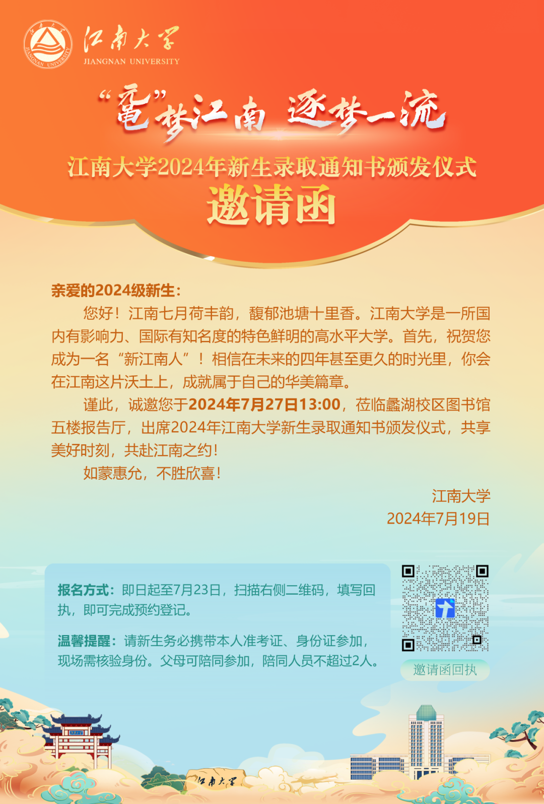 乘龙飞凤!江南大学2024年录取通知书,焕新亮相!