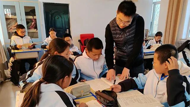 “我第一次走进课堂,二十多双充满好奇的眼睛唰的一下就亮起来了,那时我好像突然感受到老师教书育人的重大责任和意义。”大坝沟中学校长助理杜若说。