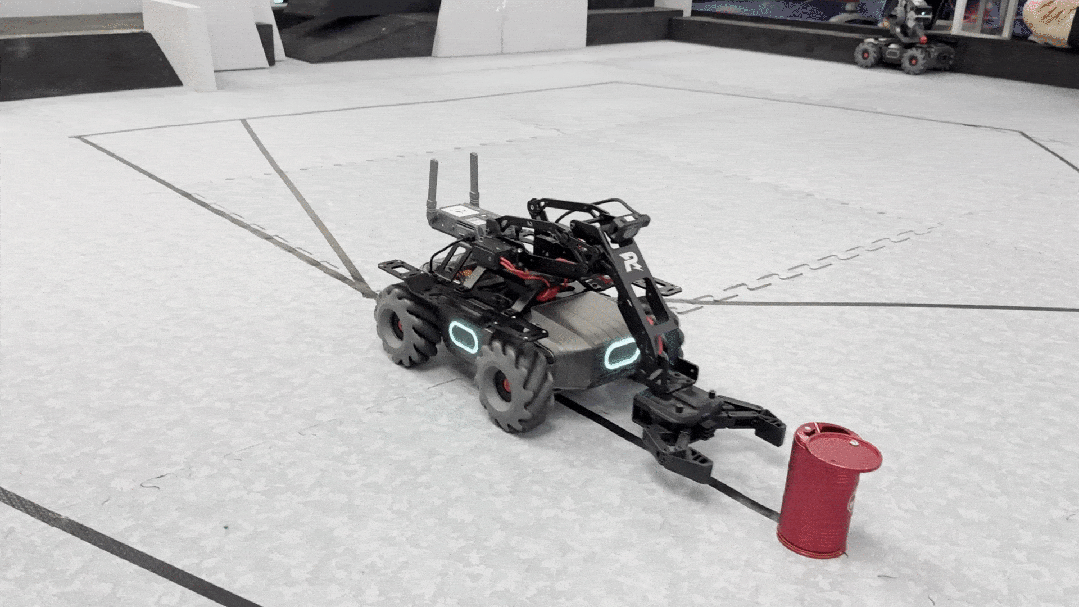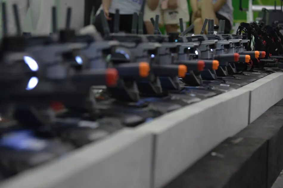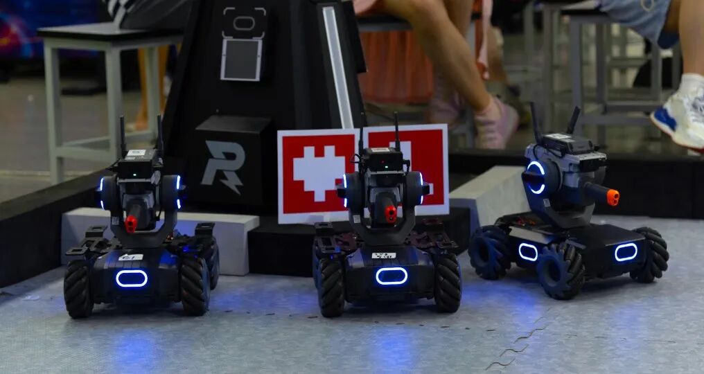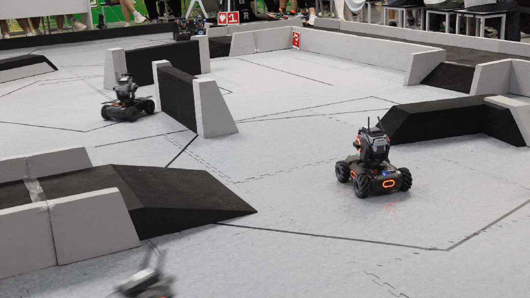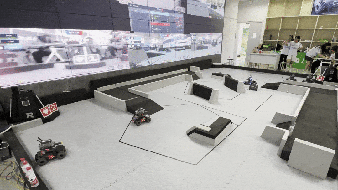 考核结束后,由志愿者们布置好3v3机器人对抗赛场地,小学员们分为红方和蓝方开始了比赛。场上激烈的战况引得观众们阵阵惊呼。