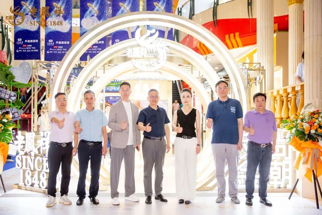爱耀七夕,璀璨大连。老凤祥“凤尚金潮”主题新品全国巡展大连站于7月26日在大连新玛特总店启幕。老凤祥股份有限公司总经理黄骅,大商集团用品集群副总裁梁特、大连新玛特总经理李剑锋,上海老凤祥有限公司业务部经理王晨、市场部经理卢晶、业务部区域经理方伟麒以及相关生产部门和老凤祥辽宁营运中心负责人等共同出席启动仪式。同期,黄骅总经理应邀为“大商集团第三届珠宝钟表文化节”致辞。