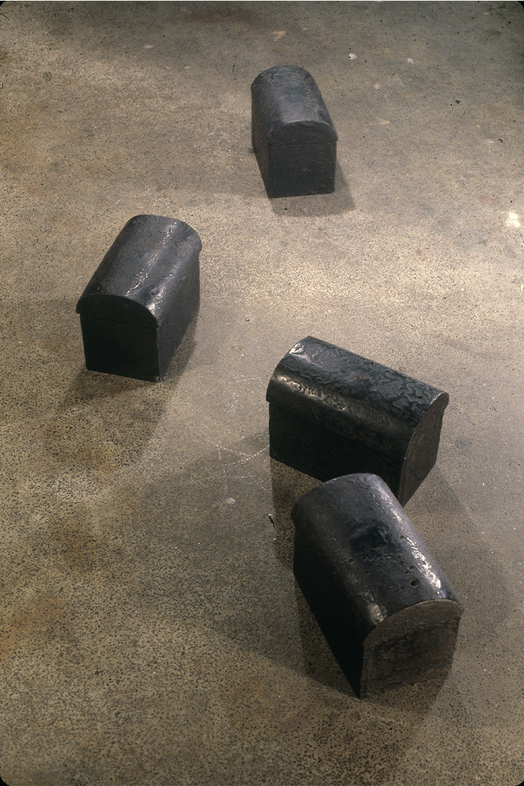 梁好:一直在挣扎。开始放弃人体就是对过去的一种否定,那个时候我做过一个圆球,把线、沥青和乱七八糟的东西缠在一起,像一个蛋里面隐藏着黑黑的灵魂;或者把一个方盒子里涂黑,再放上燃烧的蜡烛,外头用铅包裹写着“吃饭、拉屎等同艺术”;还用好多小木头板子做了很多棺材一样的小盒子,把自己的床单和烧过的木头都放在里面;还把自己特别喜欢的东西铸成铜,或浇筑在水泥里;甚至把自己花了很长时间做的木雕作品烧掉,来象征重生……每做一个作品都是一种推翻和挑战,也是对所受教育的不屑。把五年花了这么大力气学的雕塑认知都扔掉,是一个非常非常难、非常痛苦心疼的过程。打破不比建立更轻松,打破了才能建立,否则就是重复自己。