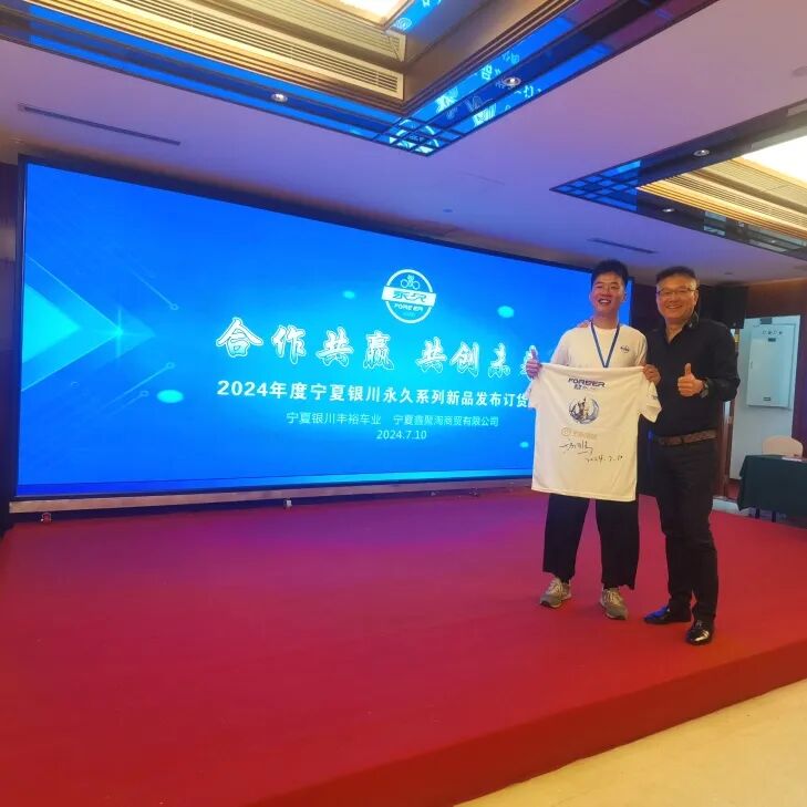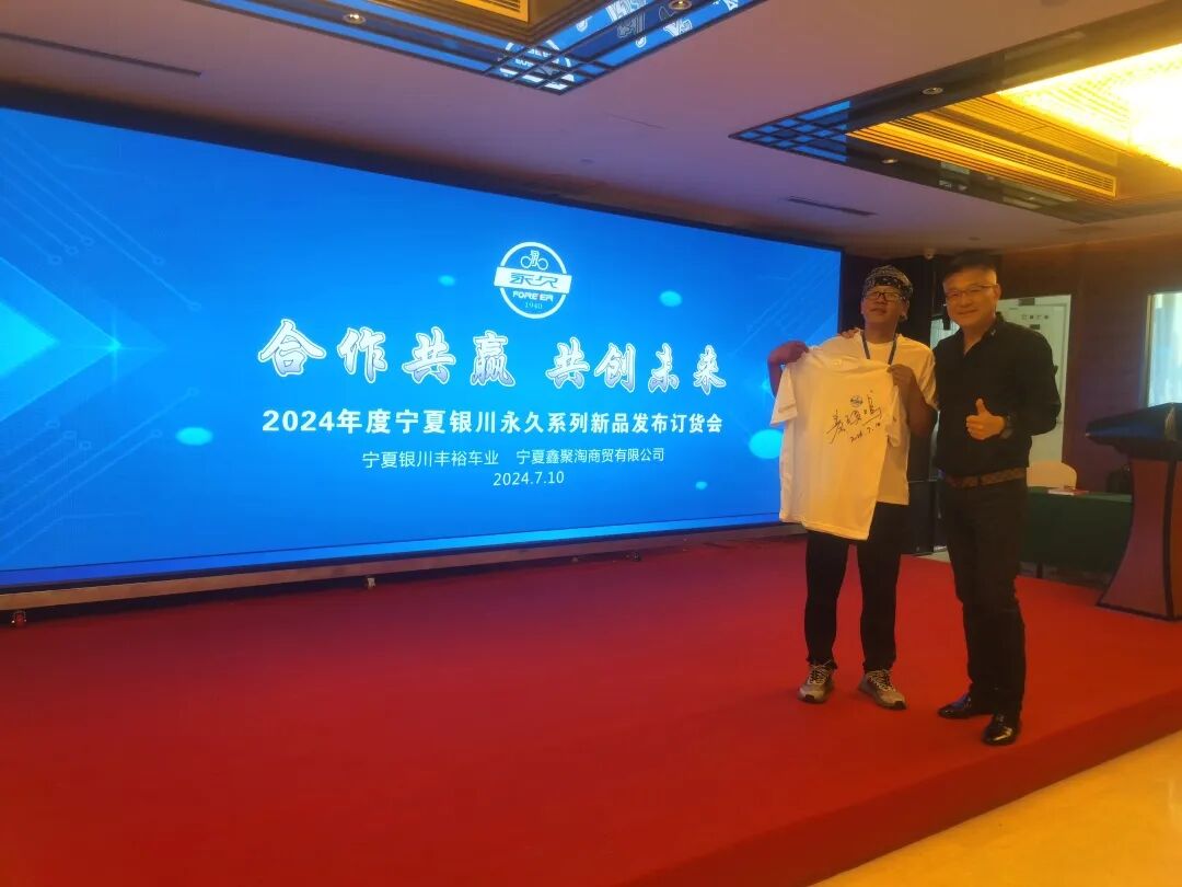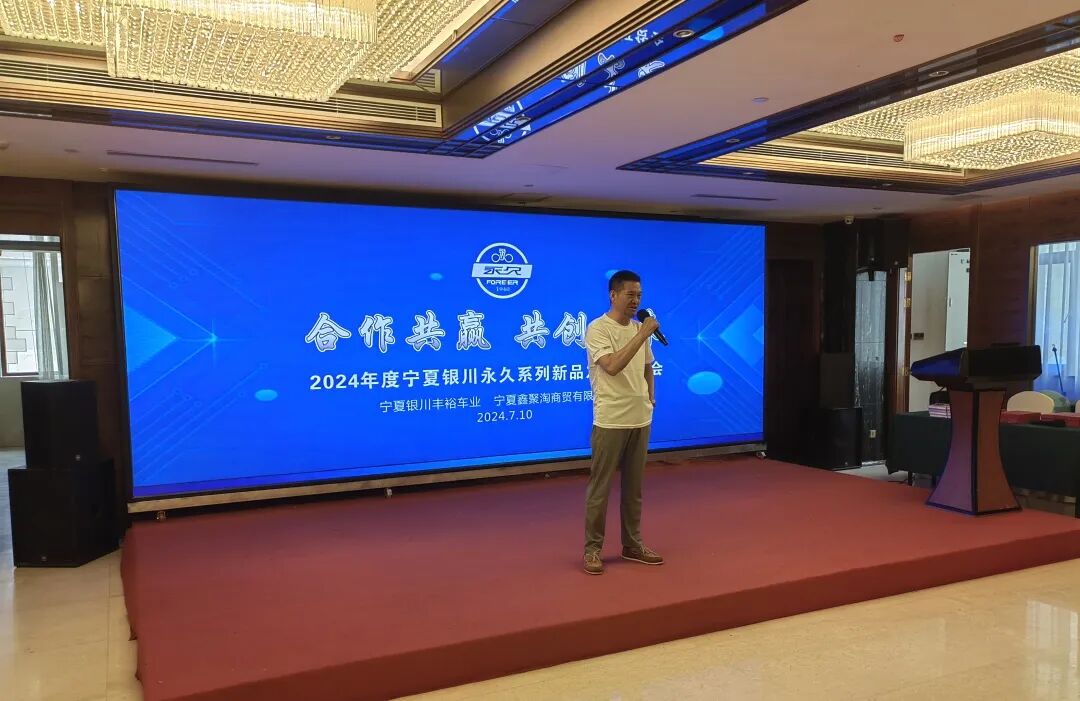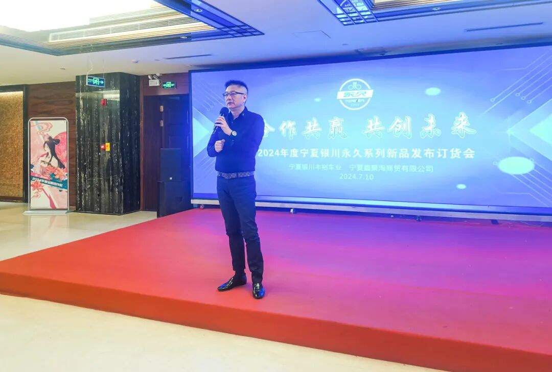 宁夏银川丰裕车业总经理刘学军致欢迎辞,刘总深情回顾了永久在银川的发展历程,从最初起步到如今繁荣,每一个里程碑都凝聚着永久人的智慧与汗水。也见证了我们在银川市场的不断壮大和深入人心。
