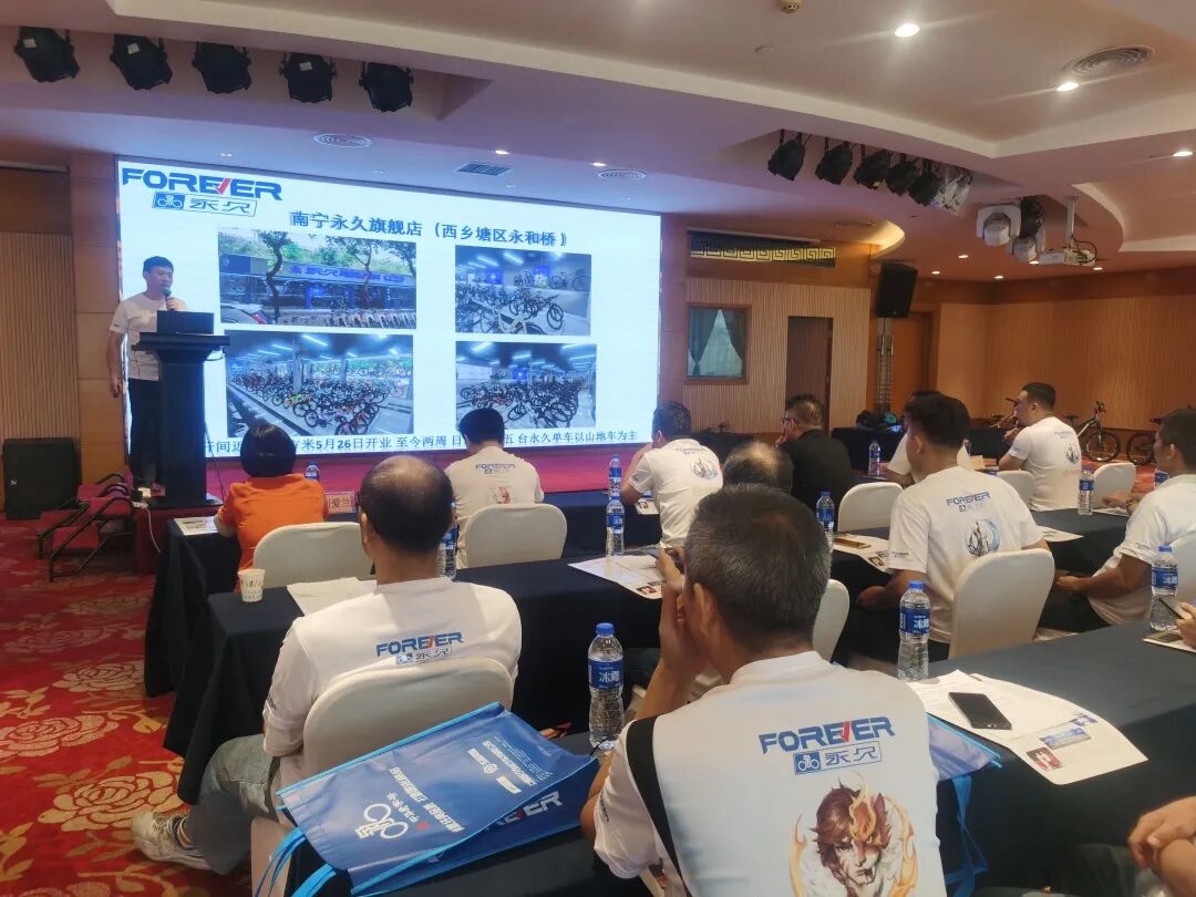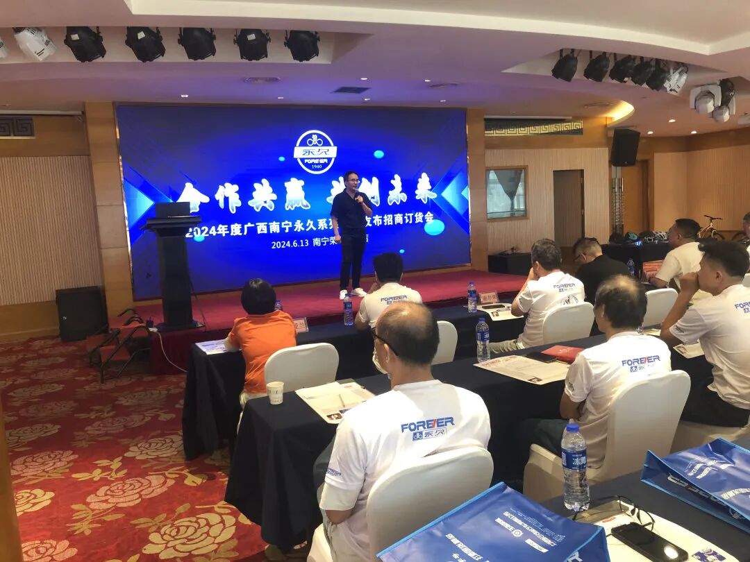本次会议永久共展出山地车、公路车、电助力车、跑车、轻便车、童车、青少年车、白金高端系列产品共百余辆。整个会议紧凑有序,每一个环节都精心安排,干货满满。在这场新品发布订货会上,思想的碰撞、合作的深化、对未来的坚定,大家携手共进,继续以独特的理念引领市场潮流!