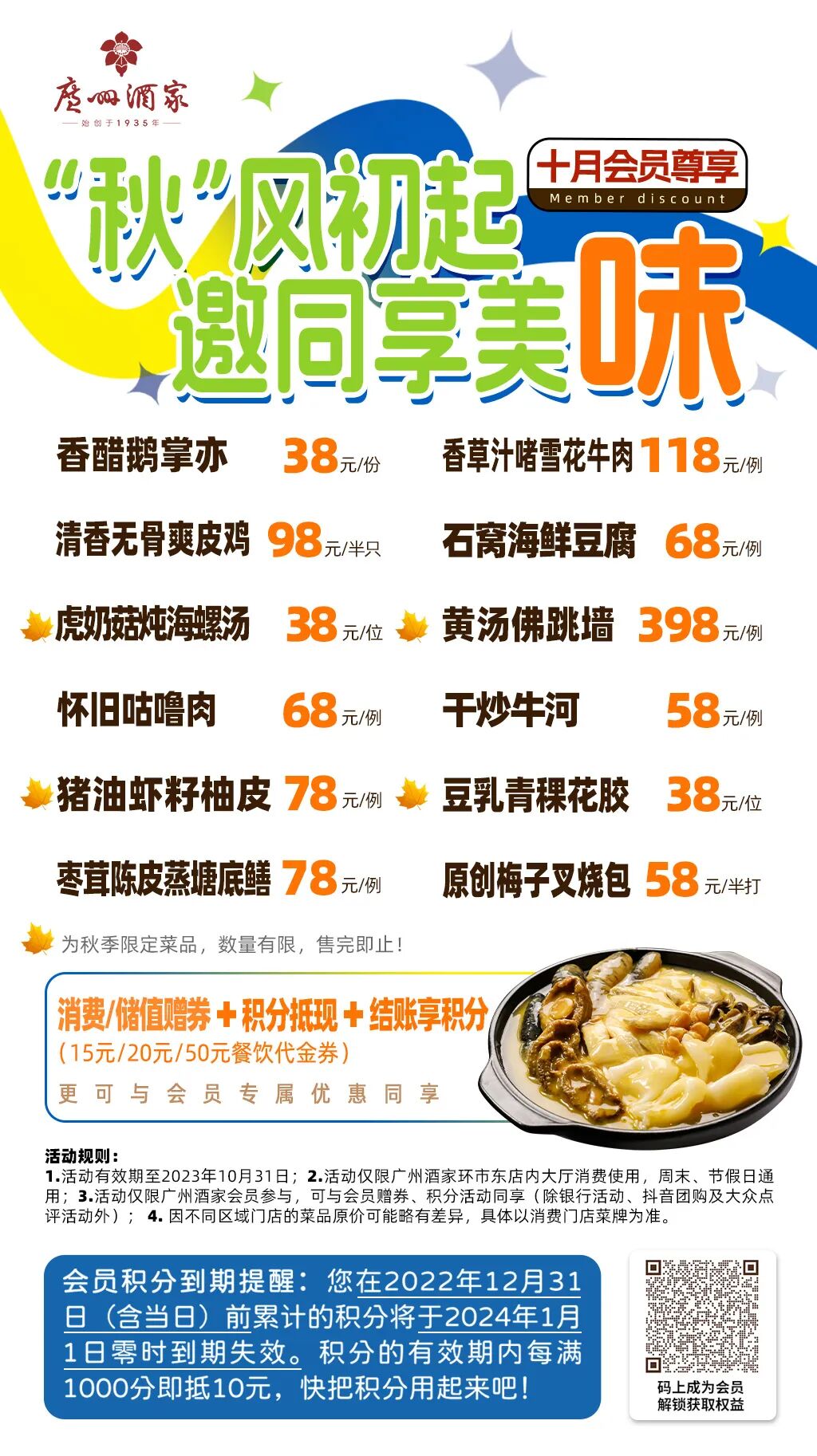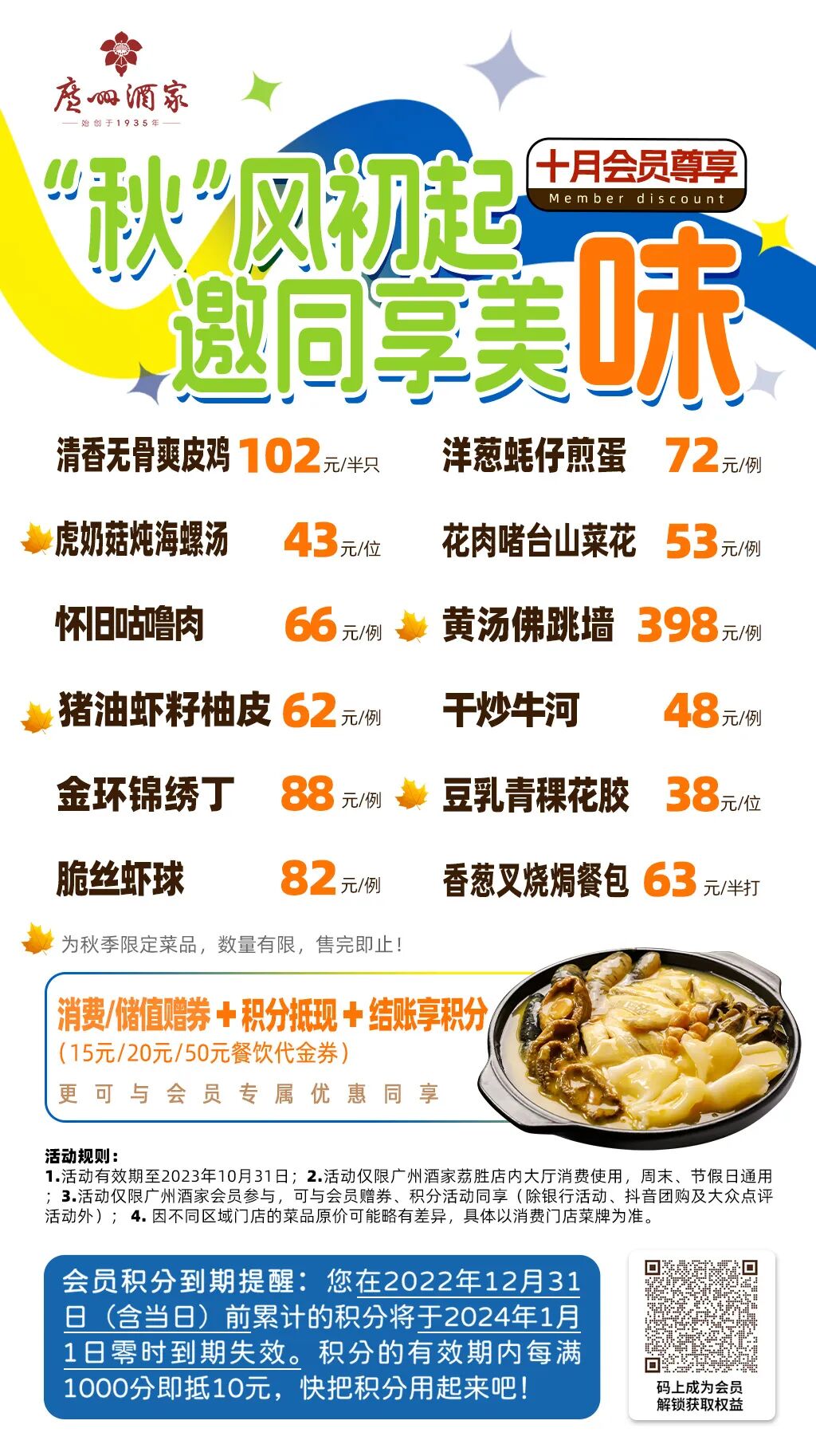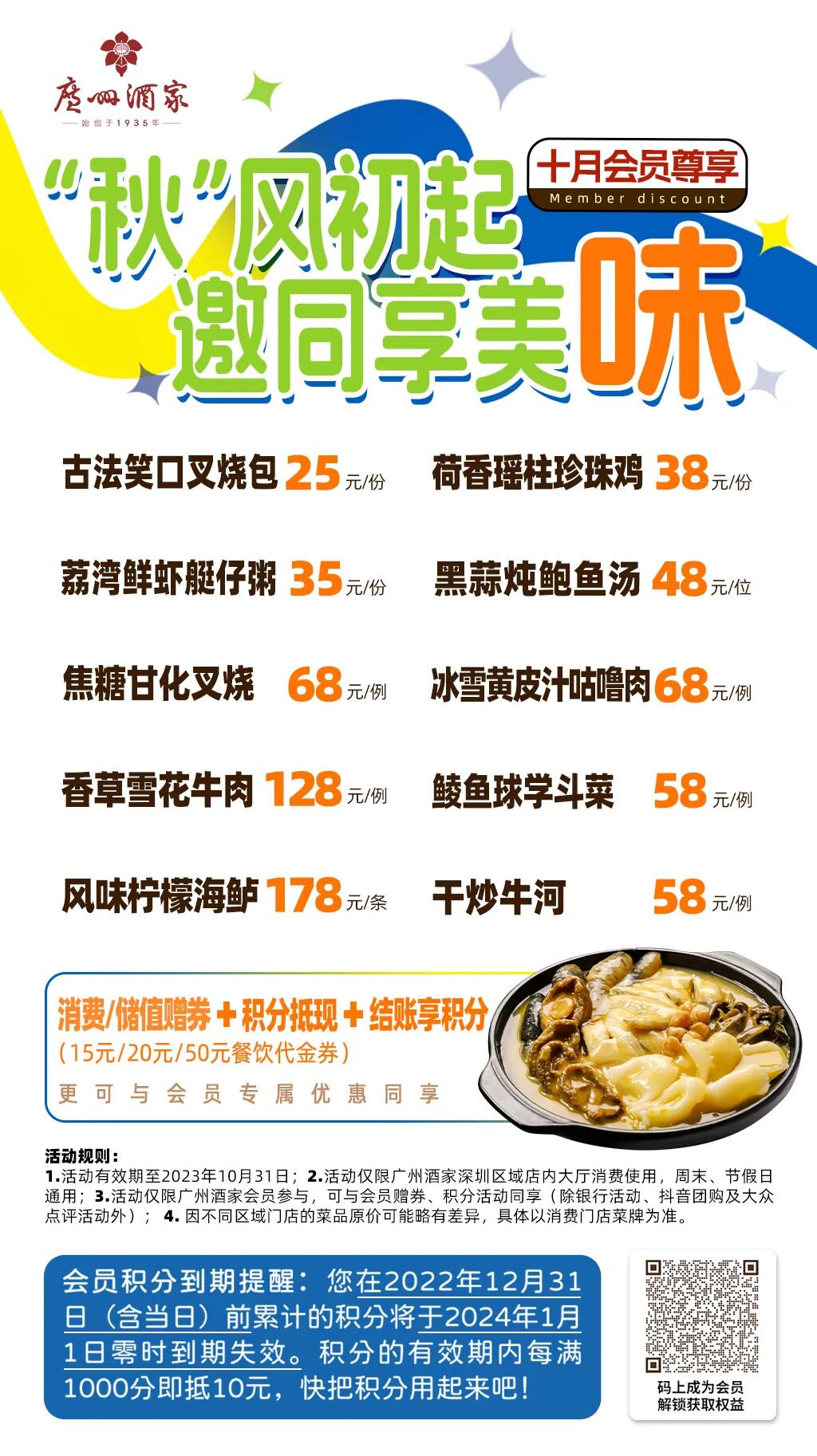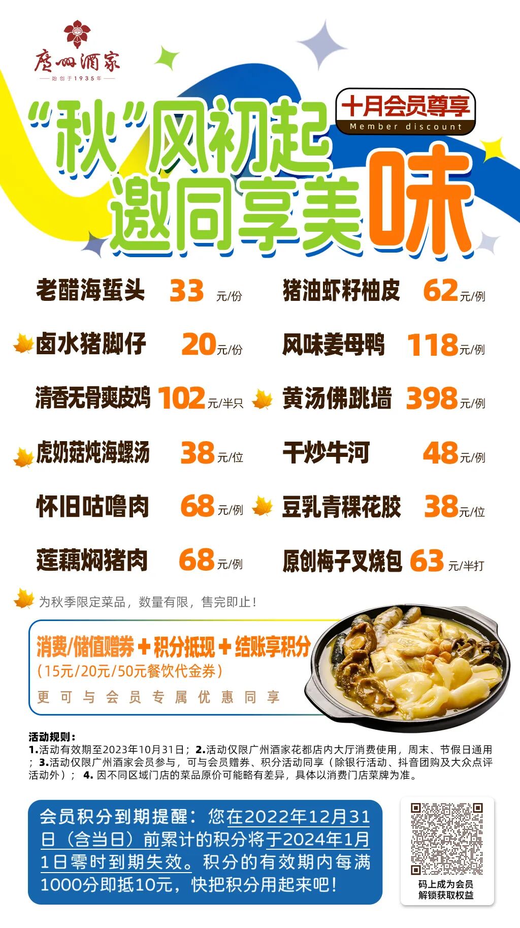 ③专属会员价活动仅限广州酒家会员身份可使用,不与店内其他银行活动、抖音团购等第三方平台活动同享;