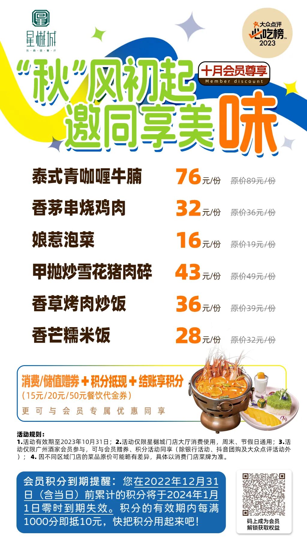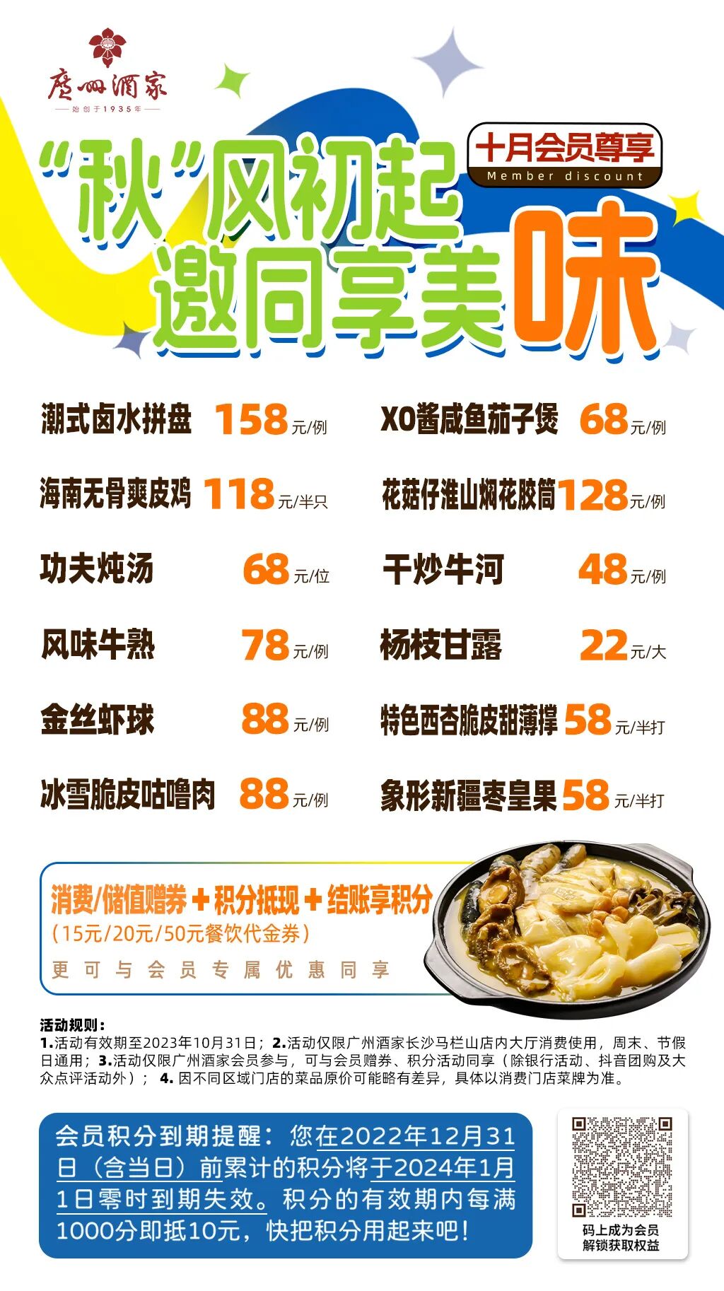 ②积分抵现、储值赠券和充值余额可与本次活动同享!更多专属会员价菜品及使用条件,请前往门店了解;