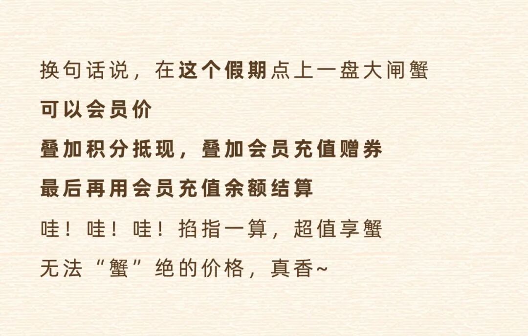 ①大闸蟹菜品图片仅供参考,实际以门店出售为准;