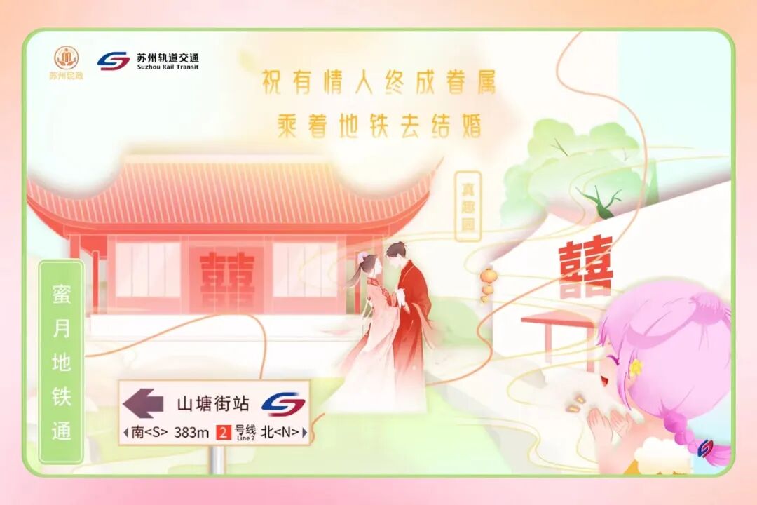 5月17日,苏州市轨道交通集团发布“乘着地铁去结婚”城市品牌,5月20日,首场“江南园林低碳新婚礼——苏式园林篇”在山塘街真趣园惊艳亮相,并重磅推出“蜜月地铁通”,诚邀全国各地、世界各国的新人来到苏州,乘着地铁体验苏式婚礼,畅游苏州欢度蜜月。