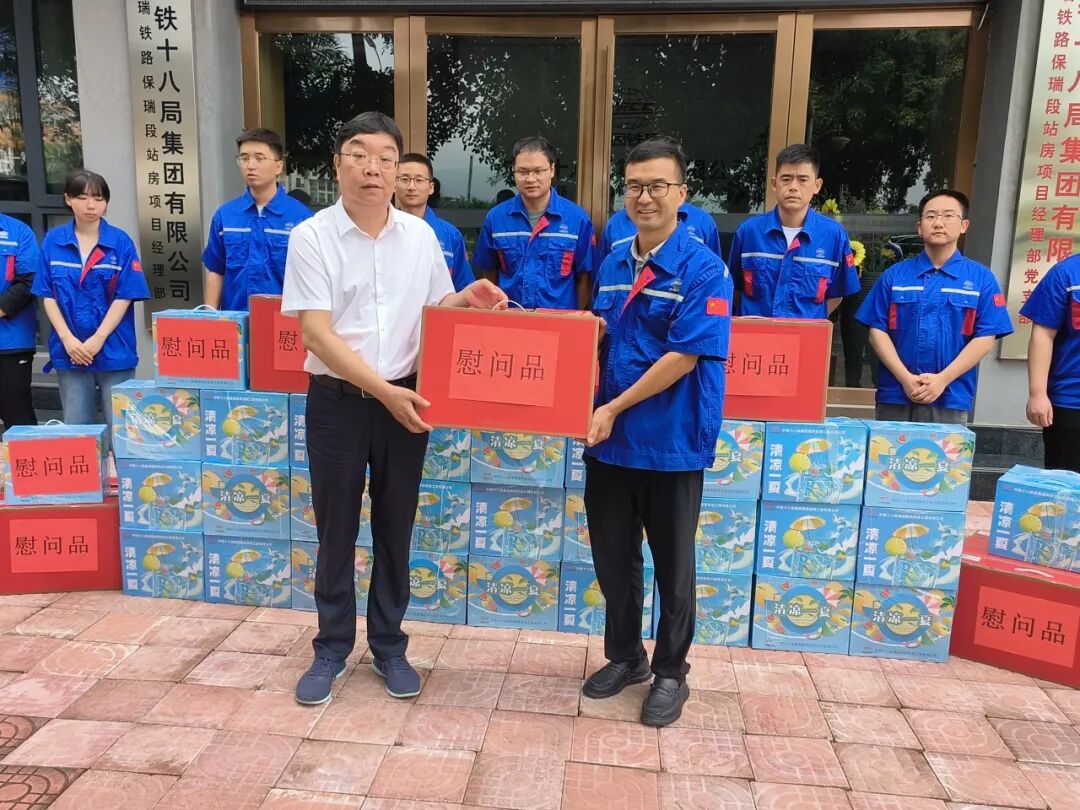 慰问现场,李明叮嘱一线职工要劳逸结合,切实做好高温防护,增强防范意识,加强高温天气作业劳动保护工作,确保建设施工安全与身体健康两不误。
