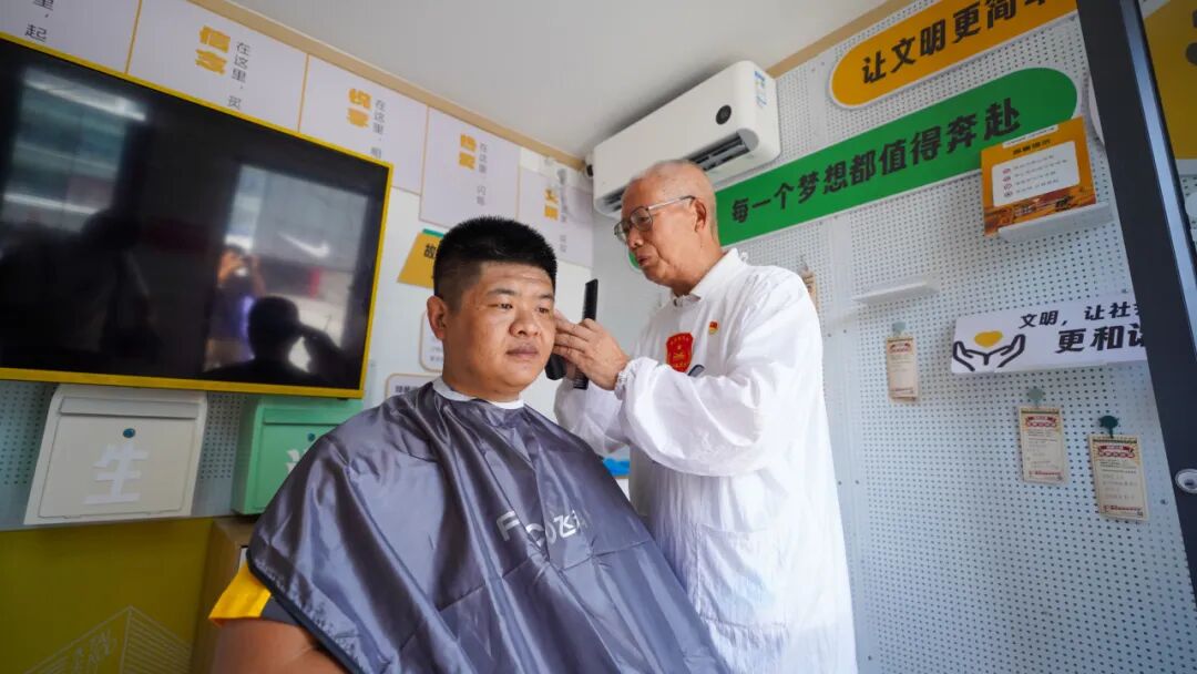 “现场的免费理发服务是平凡生活中的‘幸福烟火气’,感谢老兵的奉献,向他们学习!”