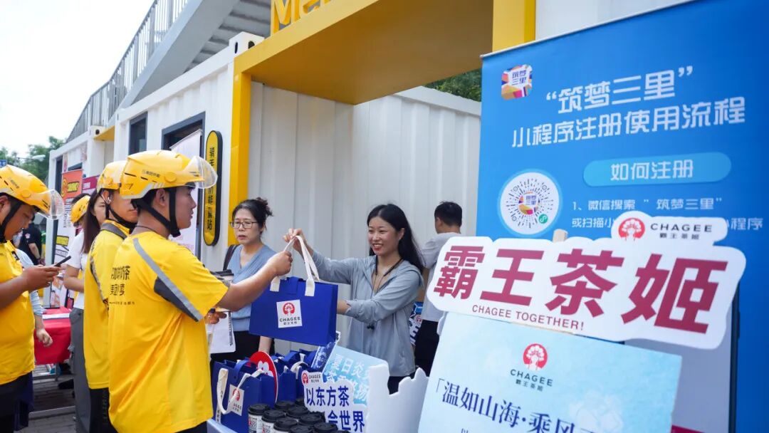 在自由互动环节,老兵理发队现场提供义务理发,得到骑手们的热情参与和感谢;工体商圈党委联合社区第二卫生服务中心为骑手们送上了酸梅汤,让他们在忙碌的工作中能及时消暑解渴;现场通过线上注册“筑梦三里”小程序、线下完成街区治理任务还可以领取清凉茶饮,鼓励大家在日常工作中积极参与基层治理,贡献智慧。